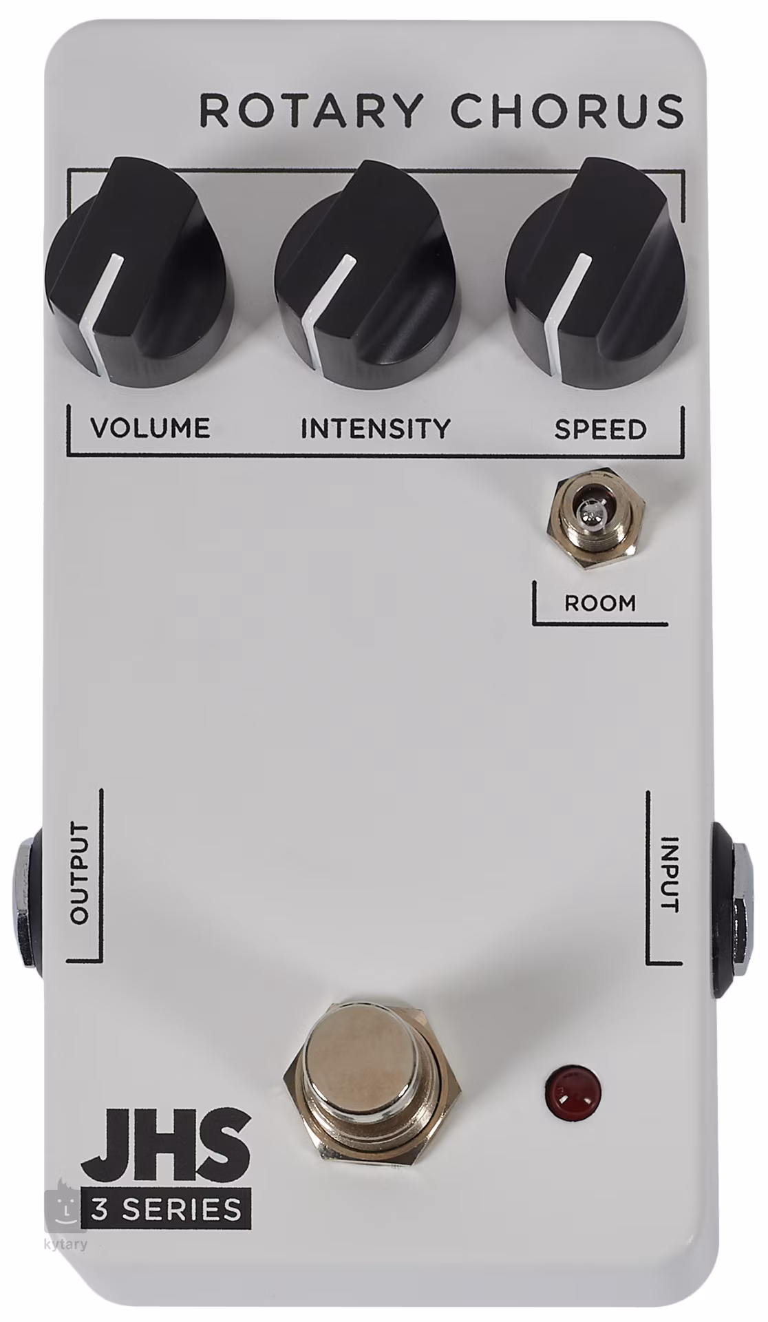 Pedál 3 Series Rotary Chorus značky JHS Pedals je založen na zvuku rotujícího reproduktoru Leslie, který byl původně vyroben pro varhany Hammond, ale stal se také jedním z úplně prvním modulačních efektů pro elektrické kytary. Rotace reproduktoru vytvářela zajímavý efekt známý v akustice jako Dopplerův jev, při němž se frekvence zvukové vlny mění v závislosti na vzdálenosti posluchače od jejího zdroje. Výsledkem je houpavý modulační efekt, který můžete znát z písní jako Black Hole Sun od Soundgarden, It’s Only Love od The Beatles nebo City Love Johna Mayera.