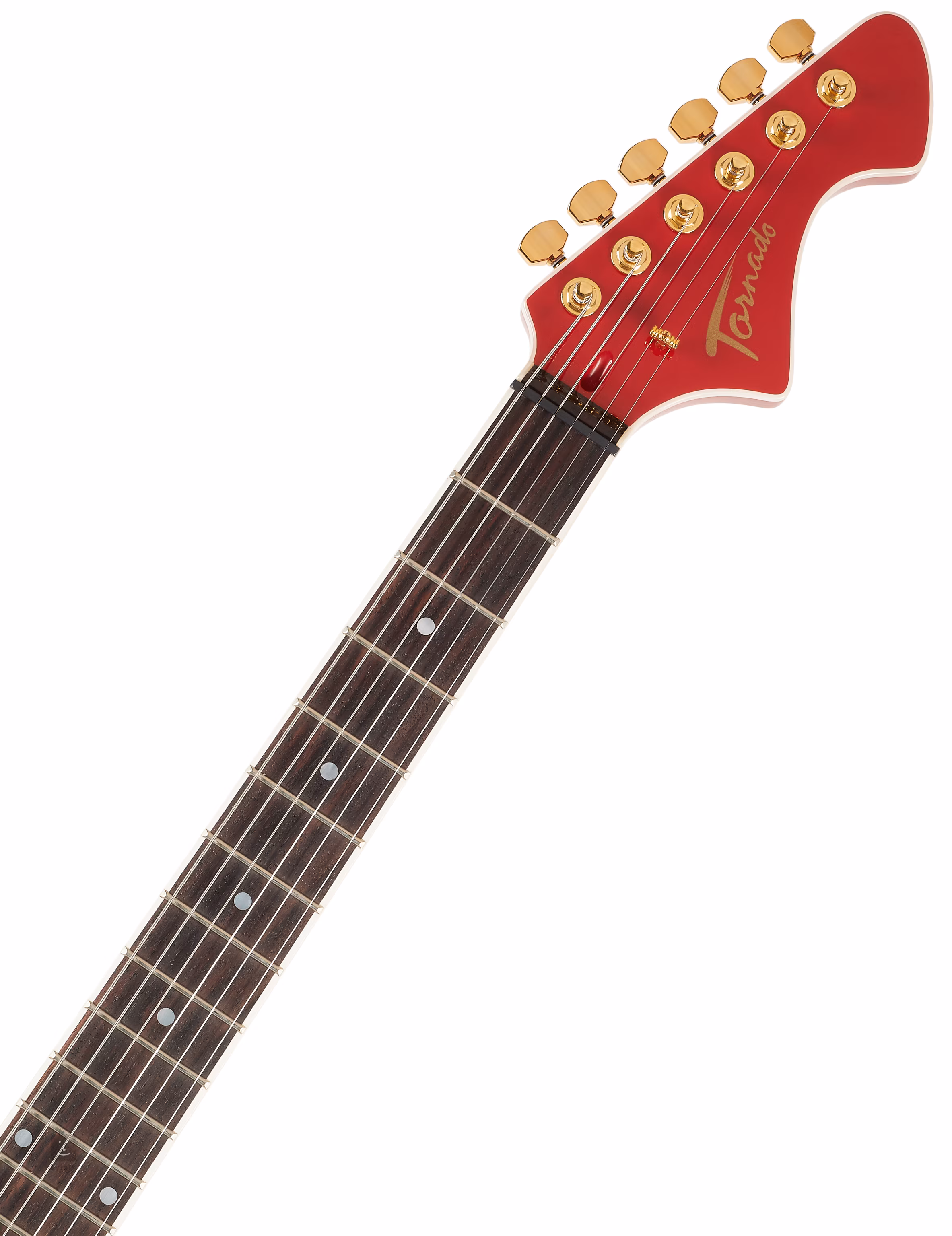 Pololubová kytara Tornado II SB SD GH RW BCG nabízí javorový korpus s javorovým topem a lesklou úpravou Jawa Red. K javorovému krku s pohodlným “C” profilem je přilepen palisandrový hmatník osazený dvaadvaceti pražci velikosti Medium Jumbo. Orientaci na hmatníku usnadňují bílé poziční tečky.