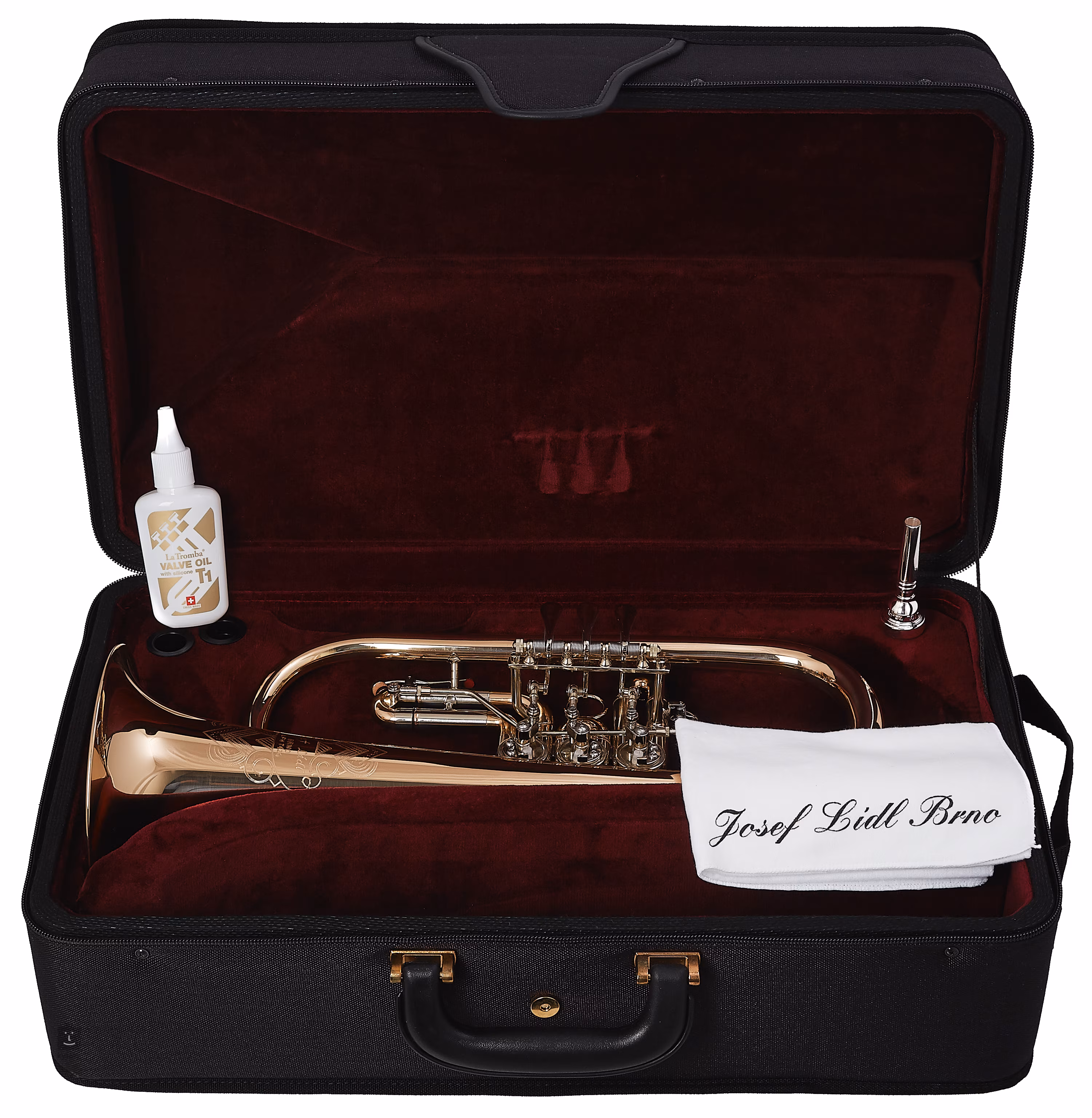 Křídlovka LFH 742 je ideální hudební nástroj pro dechovku a folklórní hudbu. Tělo nástroje je vyrobeno ze zlatomosazi, disponuje snižci z pakfongu, dolaďovačem na třetím snižci, třemi rotačními ventily a strojivem s minibaly pro jejich snadné a tiché ovládání.