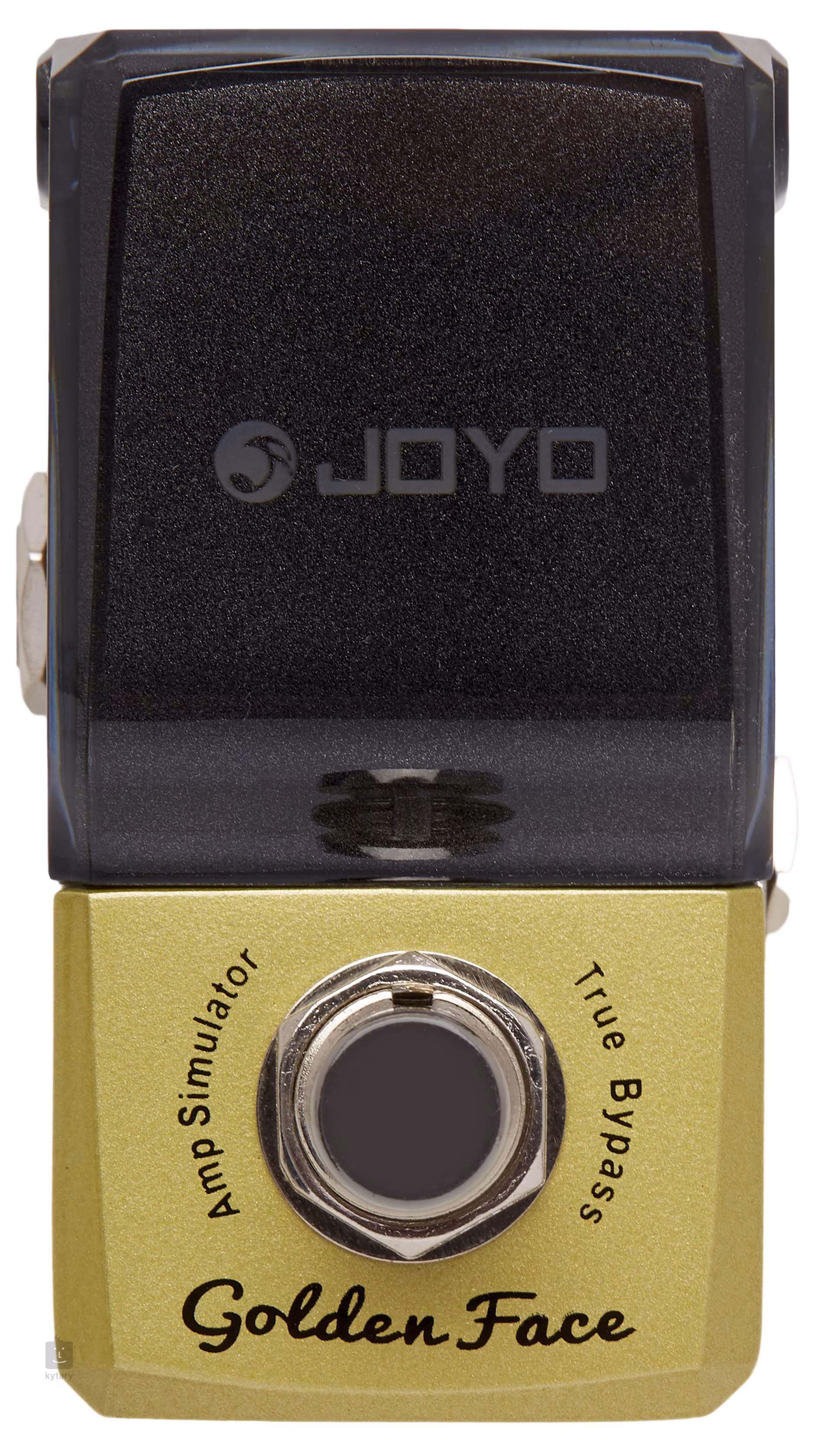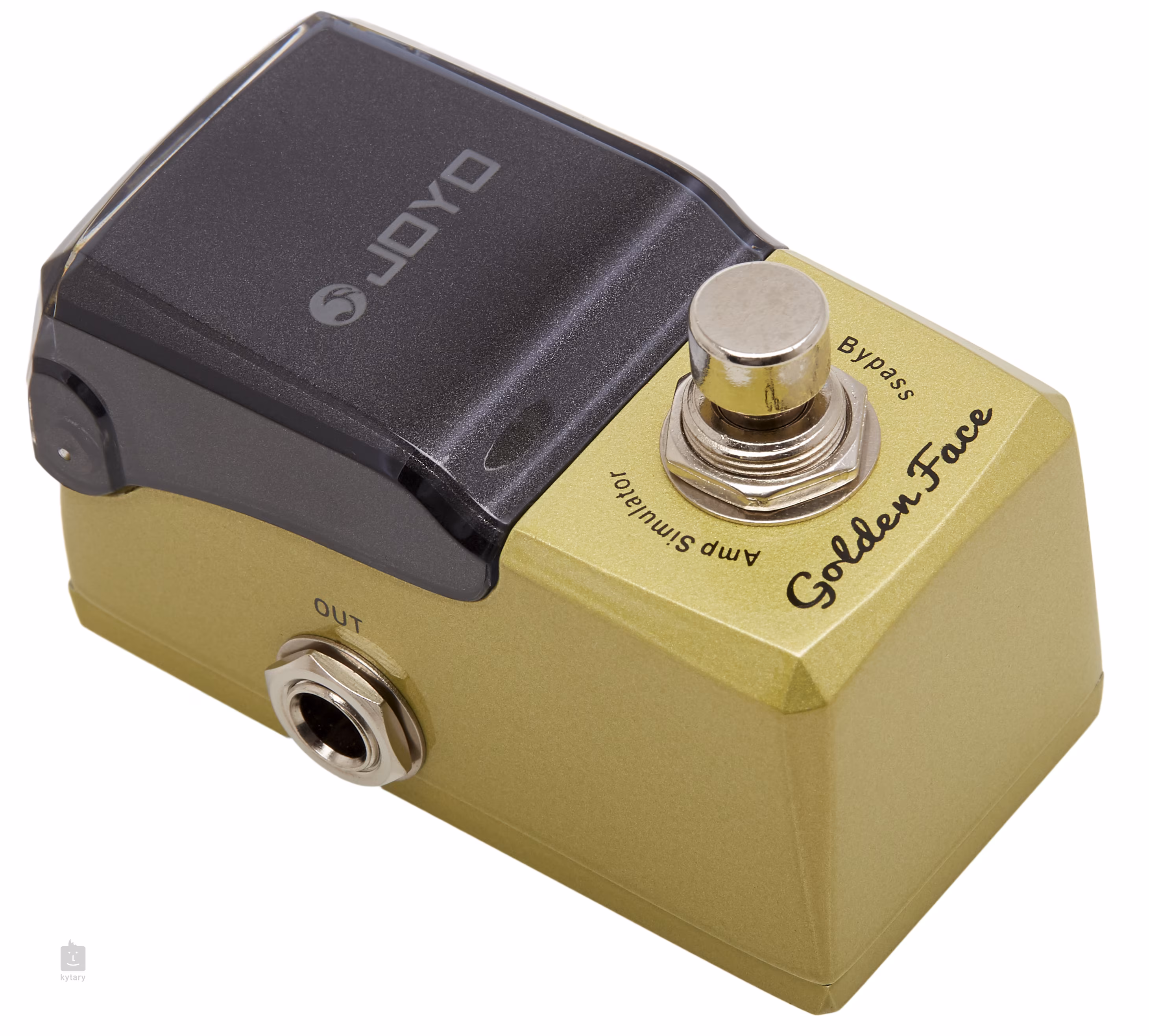 Joyo JF-308 Golden Face je kytarový efekt, který simuluje zvuk britských aparátů Marshall. Ovládání pomocí čtyř potenciometrů je zcela intuitivní. Krabičku můžete používat jak před aparátem, tak i zvuk poslat přímo do mixu či vašeho PC. Funguje v režimu true bypass, takže ve vypnutém stavu nijak neovlivňuje průchozí signál. K napájení slouží 9V adaptér.