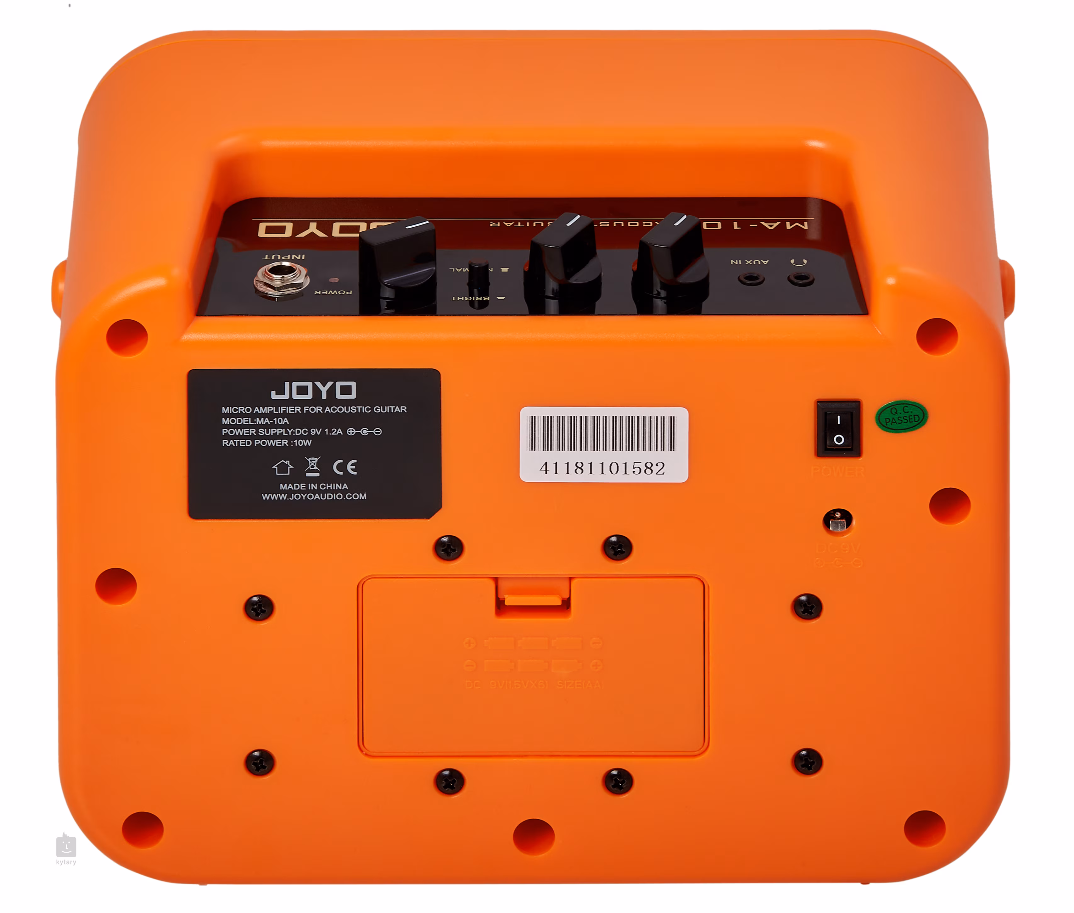 Tranzistorové mini kombo pro akustickou kytaru značky Joyo z řady MA-10 představuje ideální aparát na cesty nebo na domácí cvičení. Nabízí výkon 10 wattů, dva kanály (Normal/Bright), intuitivní ovládání a dvě užitečné funkce – Aux In vstup pro připojení externích audio/MP3 zařízení a výstup do sluchátek. Díky možnosti napájení bateriemi (6x AA) můžete přes kombo hrát i místech bez přívodu elektřiny, ke standardnímu napájení slouží přiložený 9V 1200mA adaptér. Postranní úchyty umožňují připevnit ke kombu popruh (není součástí balení).