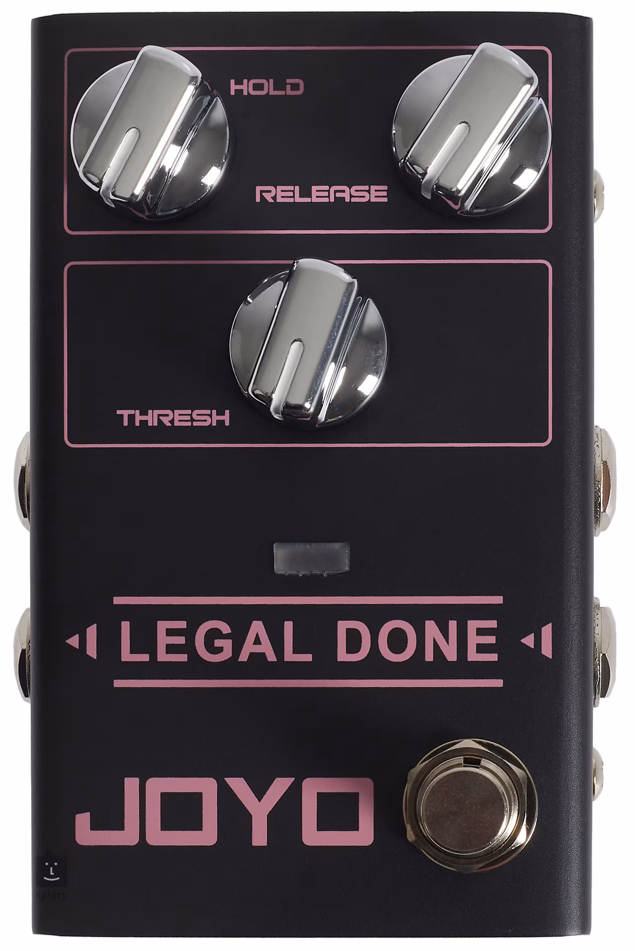 R-23 LEGAL DONE je noise gate s mono I/O i efektovou smyčkou, takže umožňuje jak zapojení pomocí dvou kabelů, tak i pomocí čtyř, kdy bývá eliminace šumu “dirt” krabiček ve smyčce často efektivnějším řešením. Tento malý eliminátor ruchu nabízí standardní možnosti nastavení v podobě ovladačů určujících práh noise gate, délku otevření filtru a rychlost než se gate zavře. Veškerá elektronika pedálu je zasazena v odolném kovovém šasi. Design krabičky zpestřuje LED osvětlení. K napájení slouží 9V adaptér, napájení bateriemi není k dispozici.