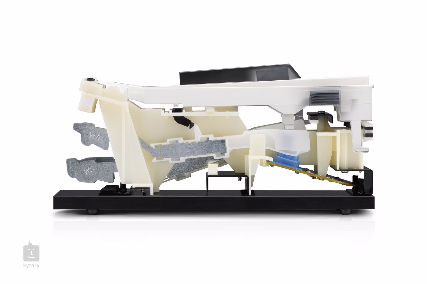 KLAVIATURA Při hraní na klaviaturu Responsive Hammer III budete mít autentický pocit, jako byste se dotýkali akustického křídla - realistický pohyb kláves s tuhým bezpružinovým designem poskytuje hladký a přirozený zážitek ze hry na klavír. Povrch kláves tvoří oceňovaný materiál Ivory Touch, který díky své jemné struktuře odvádí pot z konečků prstů, čímž napomáhá kontrole při hře. Má také přirozený matný povrch, který je hladký, ale ne klouže. Systém trojité senzorové detekce kláves nástroje zlepšuje odezvu a přesnost, složitá konstrukce mechaniky pomáhá minimalizovat hluk a kolísání kláves během pasáží staccato či fortissimo.