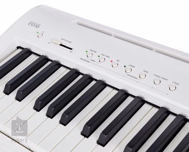 Digitální piano ES 110 patří mezi cenově dostupné nástroje, které splňují základní požadavky každého klavíristy. Autentický pocit ze hry jako na akustické piano zprostředkovává kladívková klaviatura (RH-C) a technologie Harmonic Imaging reprodukující přirozený zvuk včetně široké dynamické palety nástroje. Intenzivnější pocit ze hry umožňují prostorové efekty, u kterých lze upravovat Voicing, Resonance a dalších akustické vlastnosti. Piano je dále vybaveno praktickými funkcemi pro cvičení a rozvoj potenciálu jako jsou lekce hry, metronom, rekordér, režimy Dual a Split a 100 bicích patternů. Pro bezdrátovou komunikaci s externím smart zařízením klávesy disponují Bluetooth technologií.