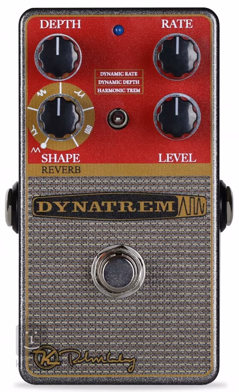Kytarový pedál DynaTrem od americké značky Keeley představuje efekt tremolo, který nabízí skvělou dynamiku a odezvu na styl vaší hry. Čím silněji „hrábnete“ do strun, tím silnější odezvu vyvoláte. K dispozici máte tři režimy efektu – v modu Dynamic Rate ovlivňujete dynamikou úderu rychlost tremolo efektu, v režimu Dynamic Depth jeho intenzitu. Potenciometr Shape slouží v obou případech k nastavení jedné ze čtyř křivek signálu – Ramp Up, Sine Wave, Ramp Down a Square Wave. V posledním modu Harmonic Tremolo obohatíte tremolo efektem reverb, stažením potenciometru Depth získáte čistě zvuk reverb efektu. Zbylý ovladač Level určuje hlasitost výstupního signálu.