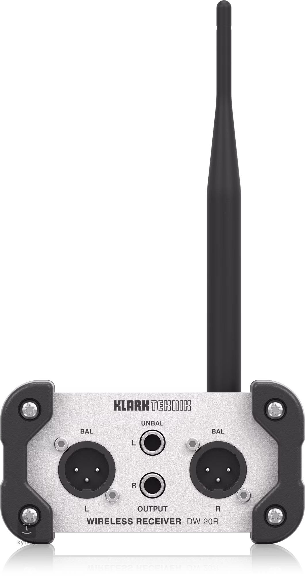 Klark Teknik DW 20R je bezdrátový stereo přijímač, který v kombinaci s bezdrátovým vysílačem DW 20T (není součástí balení) poskytne kvalitní stream audia libovolnému přenosnému zvukovému systému. Nabízí externí anténu, dosah až 30 metrů a dva symetrické XLR a dva nesymetrické 6,3 mm jack TRS výstupy pro propojení s mixpulty, zesilovači a aktivními reproboxy. K napájení DW 20R použijte přibalený adaptér.