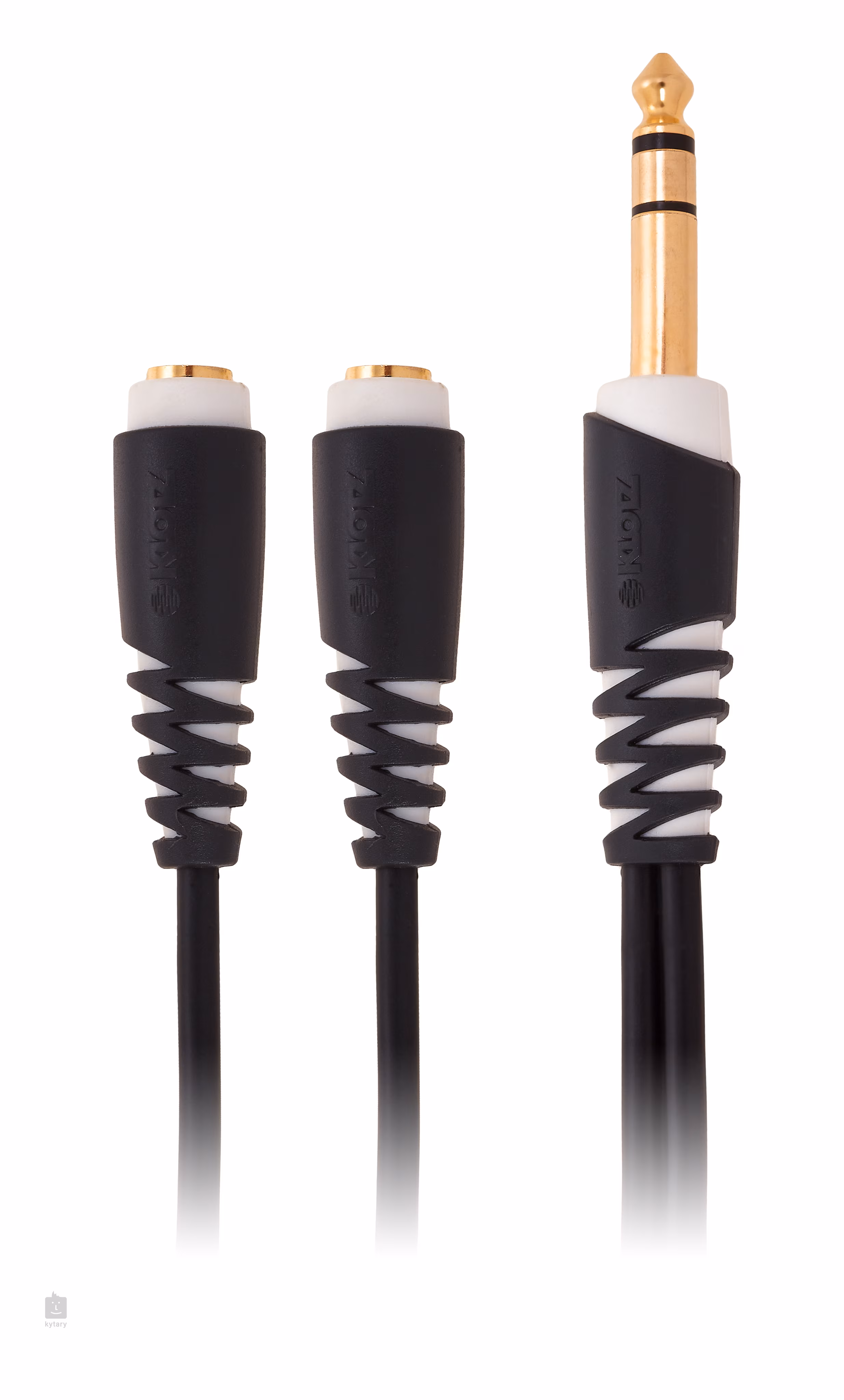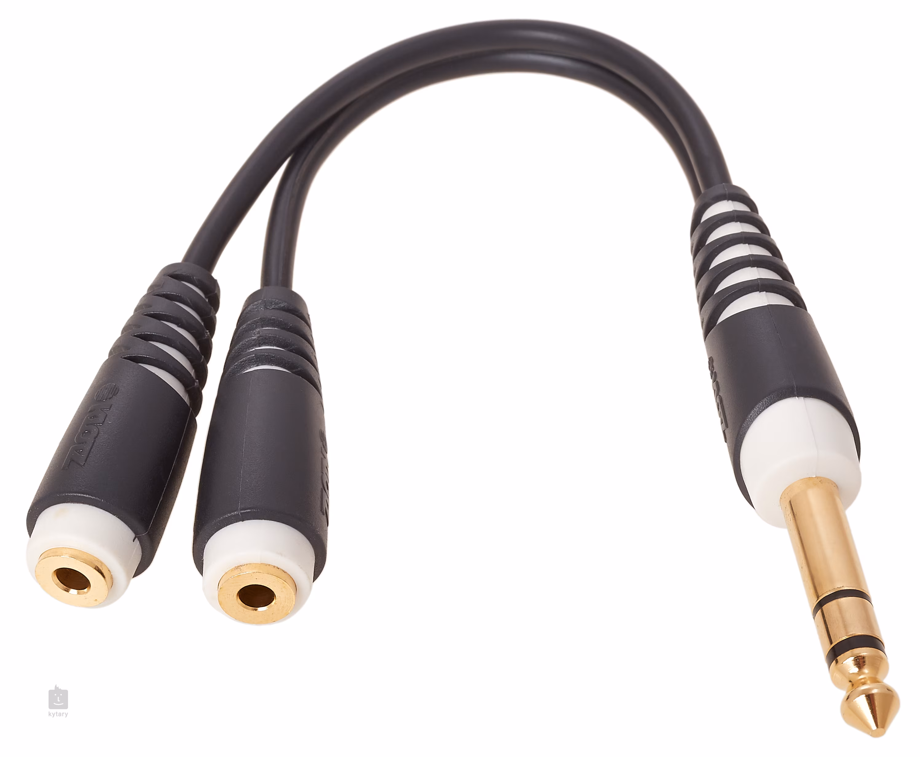 Kabel typu Y z kvalitní mědi. Distribuuje stereo signál do dvou stereo kanálů, vhodný například pro použití se sluchátky.
