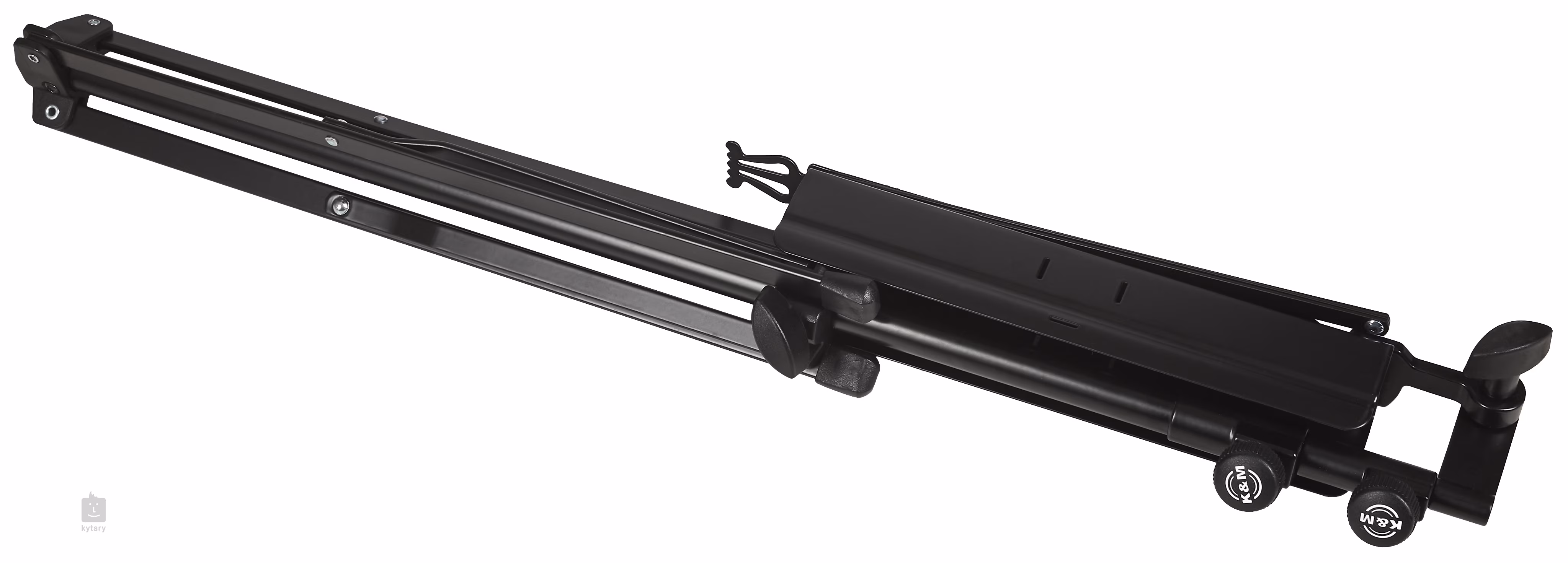 K&M 10052 XL je lehký ocelový notový stojan ve zvětšené/prodloužené verzi. Nabízí skládací notový pult s rozměry 435 x 215 mm, trojdílný skládací design se základnou v podobě trojnožky a nastavitelnou výšku od 640 do 1500 mm. Ve složeném stavu nezabere prakticky žádné místo – představuje ideální volbu pro muzikanty vyšší postavy hrající ve stoje.
