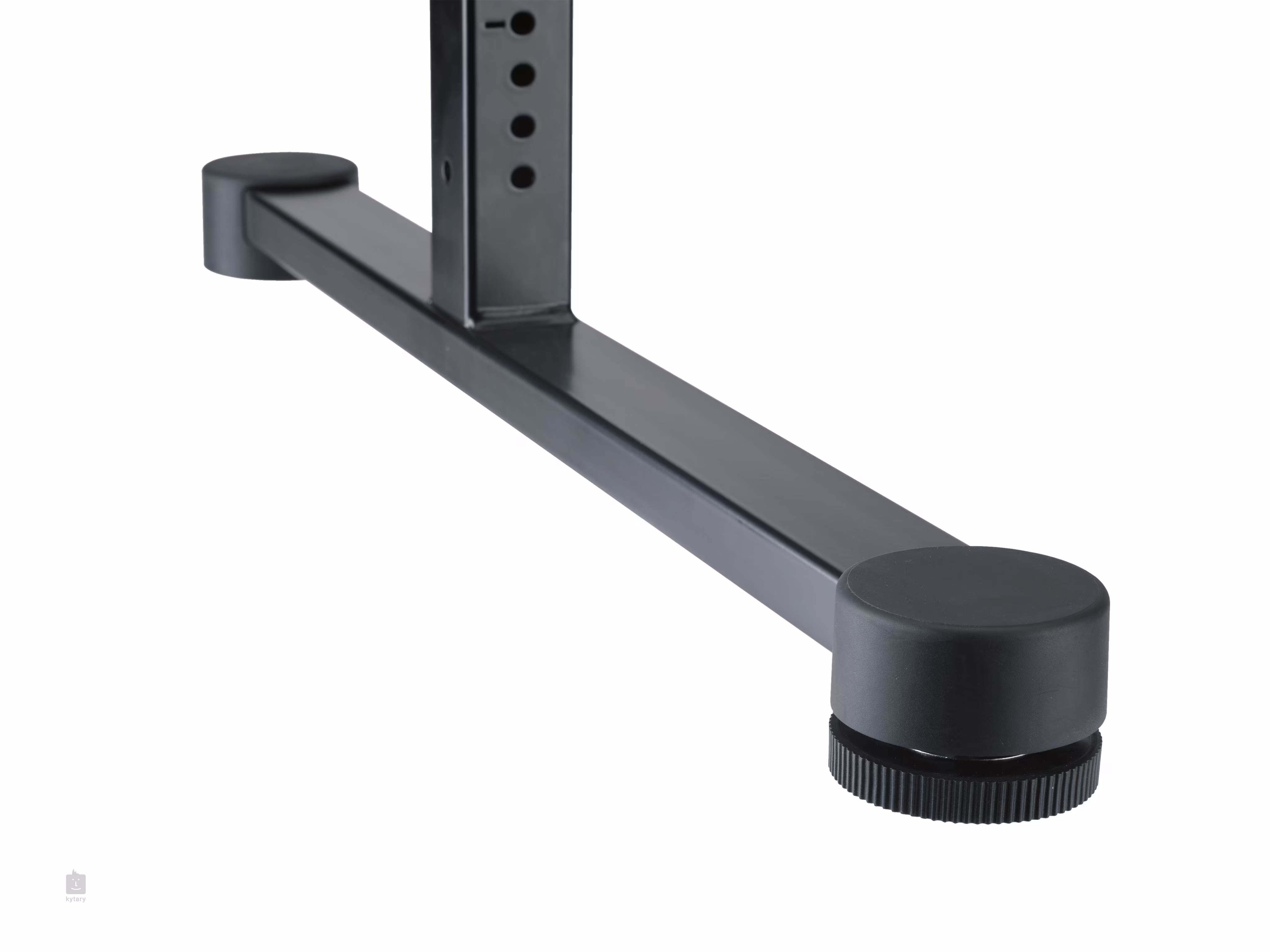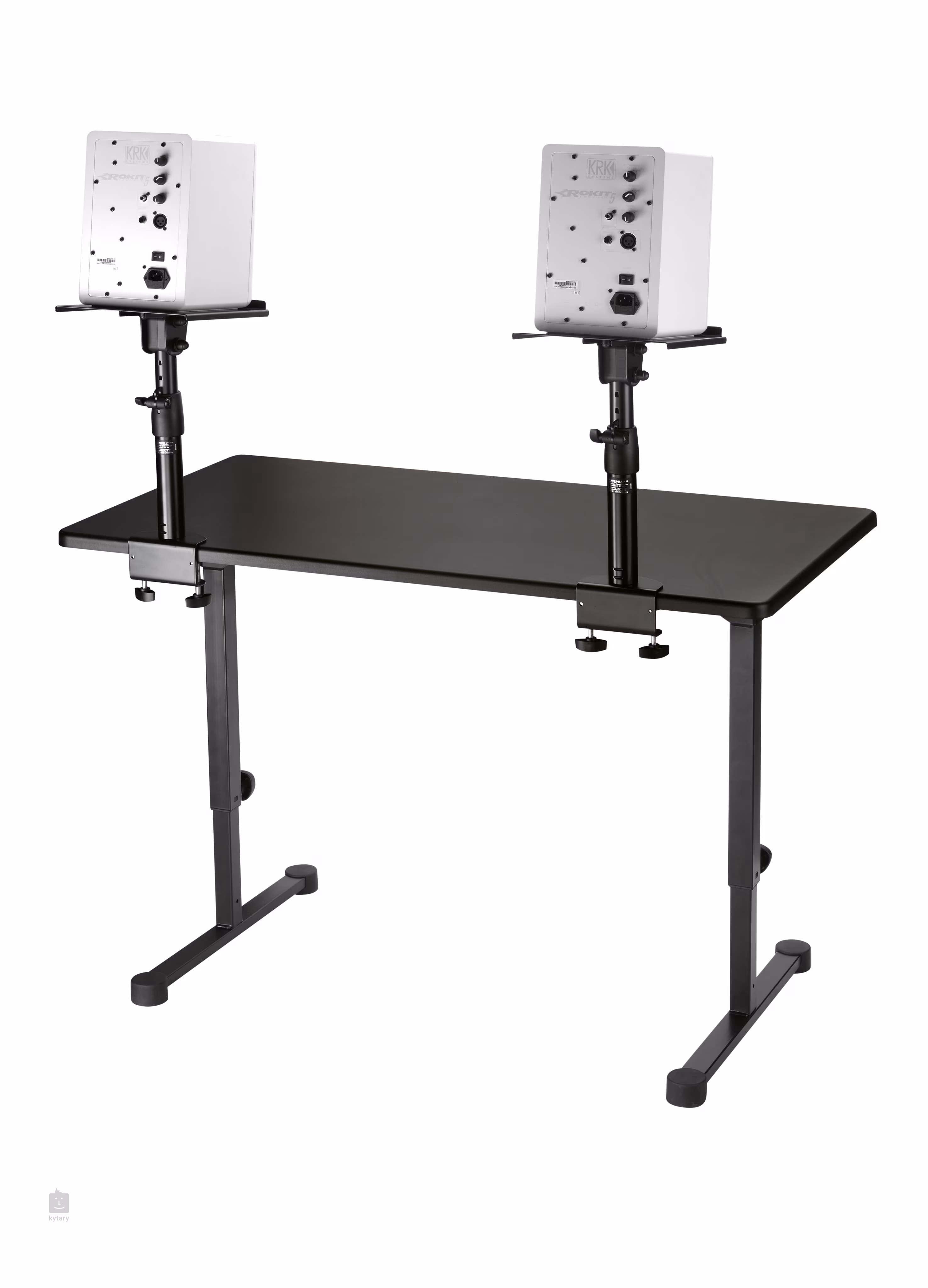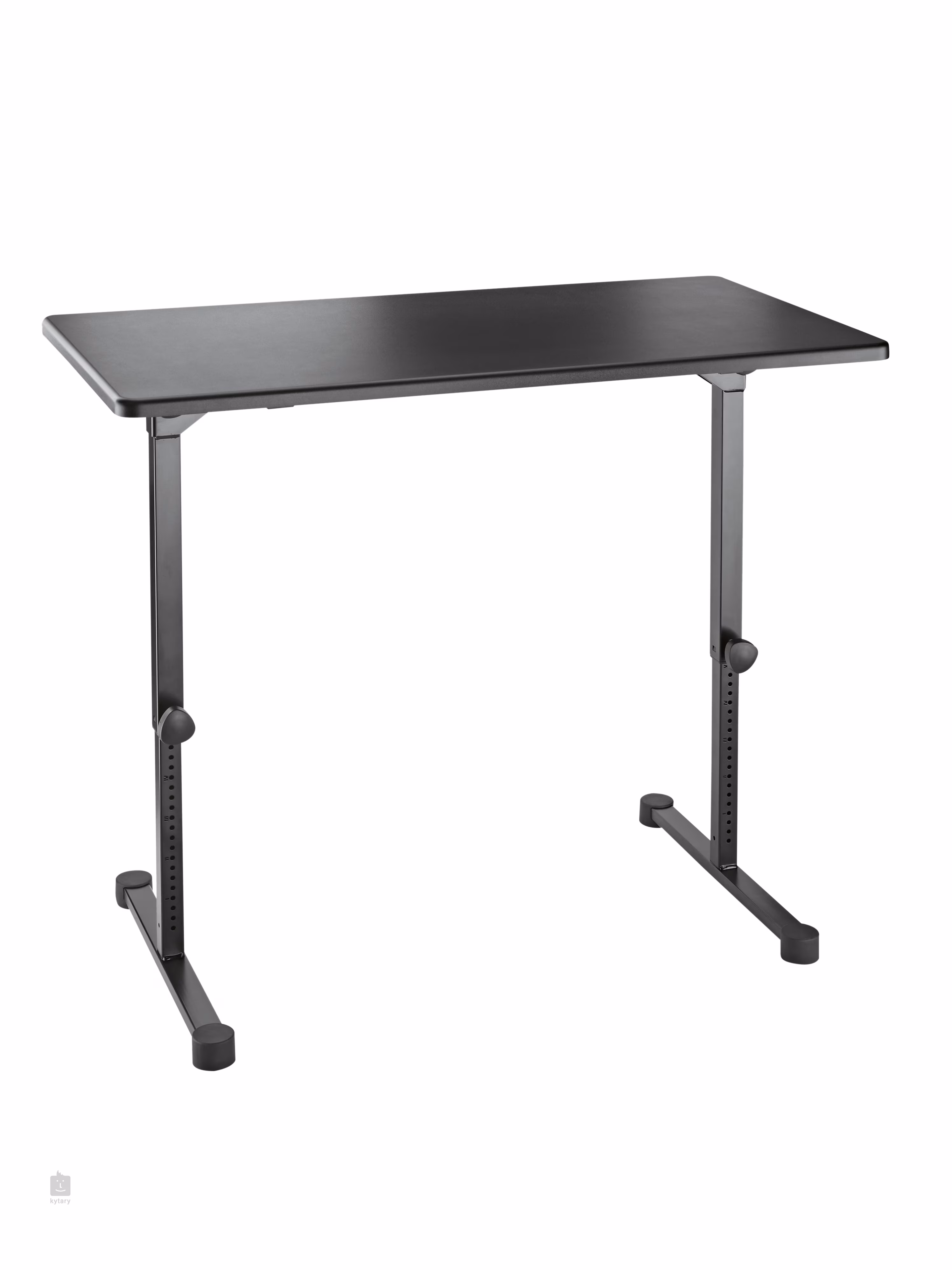 Profesionální DJ stůl vhodný pro live performance, studiové session, nebo do zkušebny. Pracovní plocha je vyrobena z překližky a disponuje rozměry 1170 x 600 mm, takže bez problému pojme DJ mixpult, laptop a další zařízení. Výškově nastavitelná konstrukce je potom vyrobena z odolné oceli. Celý stůl během chvilky rozložíte do velmi kompaktních rozměrů ideálních pro převoz mezi produkcemi.