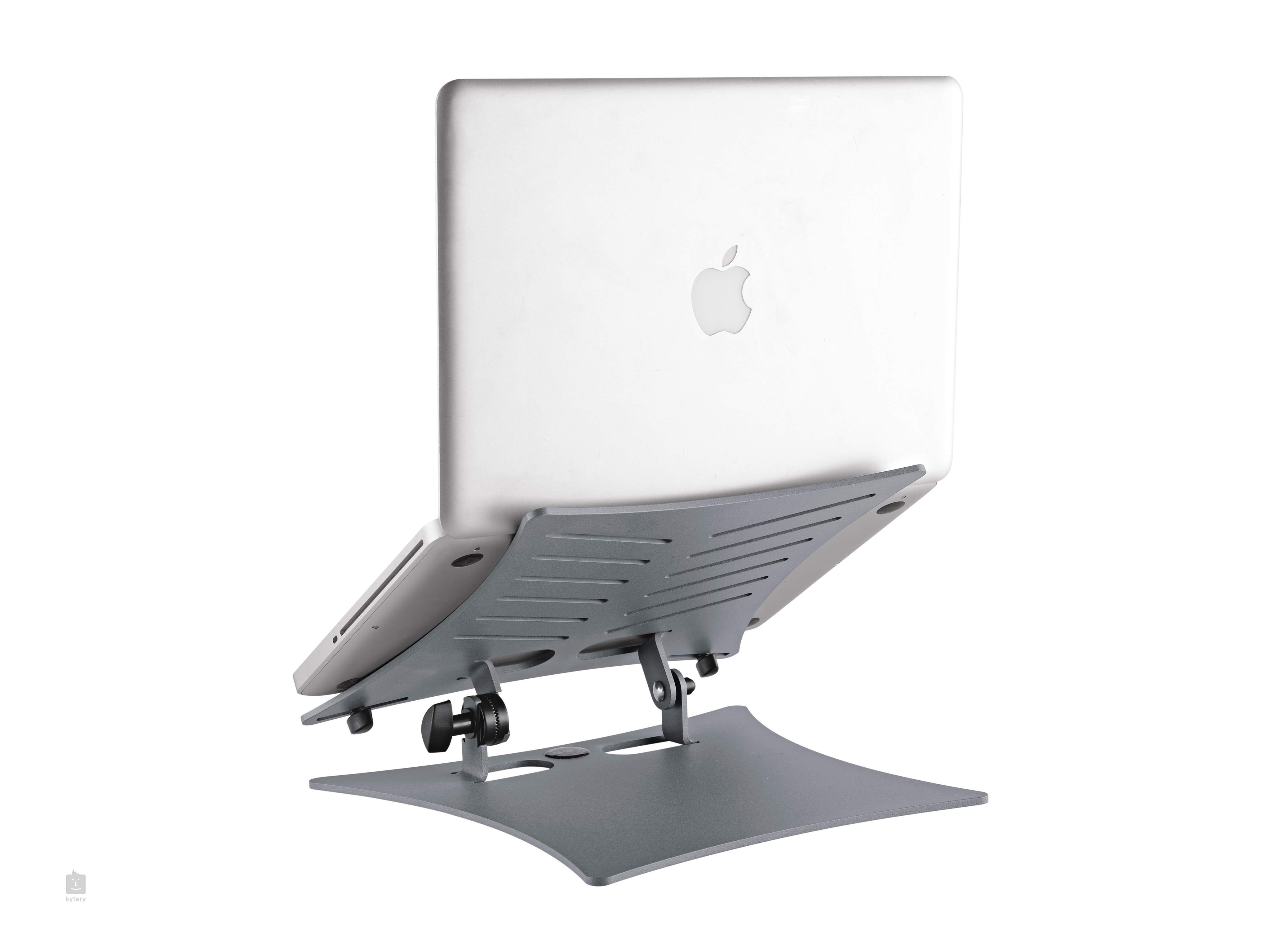 Kvalitní stojan na notebooky vhodný pro domácí nahrávací studio a live performance. Výškově nastavitelná konstrukce je vyrobena kombinací oceli, hliníku a pogumovaných částí pro maximální bezpečí vašeho zařízení. Hudebníci a DJ můžou stojan kromě notebooku využít i pro mixpulty, CD přehrávače a další zařízení. Sklon stojanu lze nastavit v rozmezí 0 - 48 stupňů.