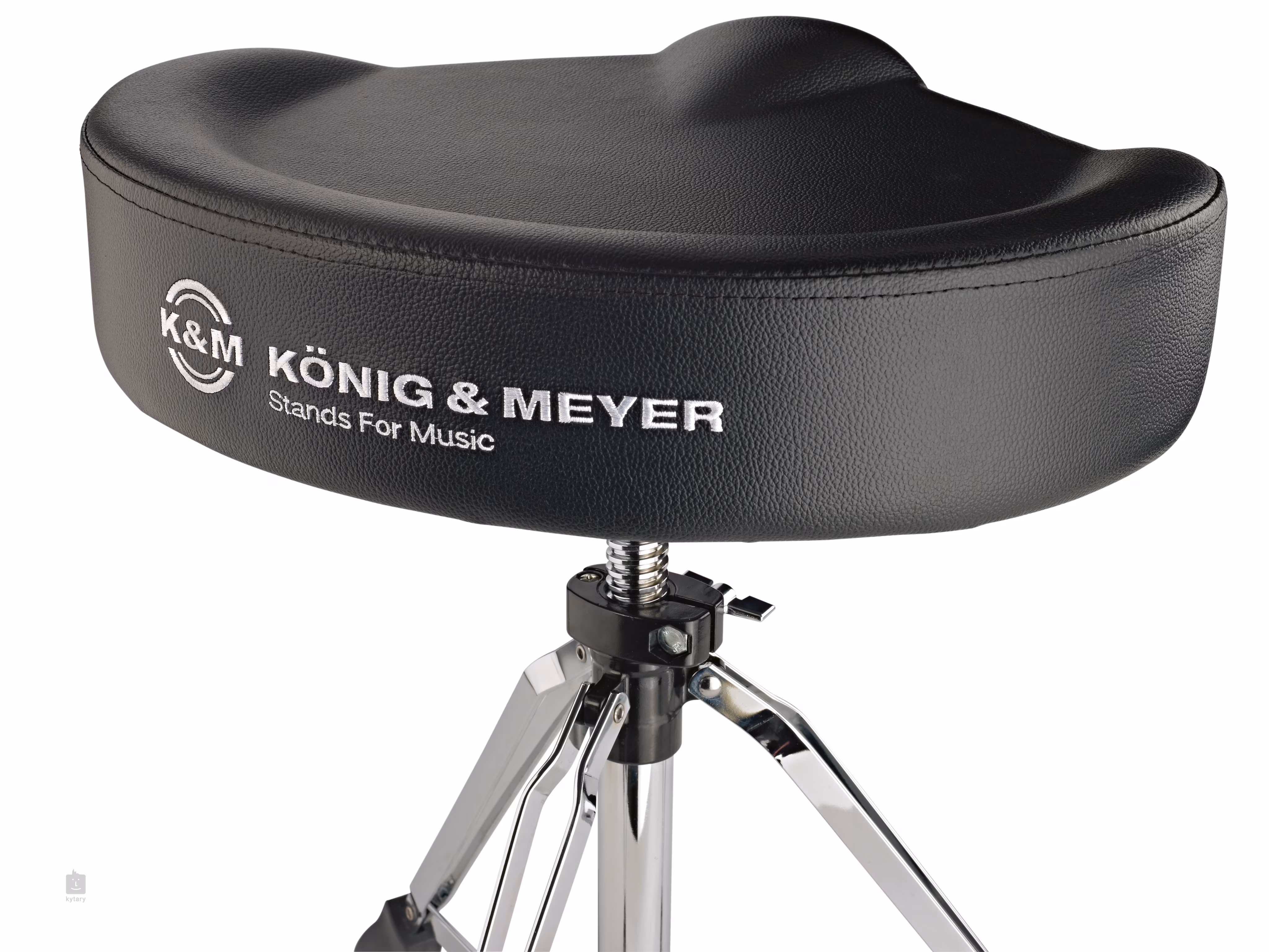 Profesionální bubenická židle on německé značky K&M. Vyrobena je z pevné oceli, která společně s širokou základnou zajistí maximální stabilitu. Je výškově nastavitelná v rozmezí 465 - 670 mm díky klasickému šroubovacího systému, který je možné zablokovat pomocí svorky. Ergonomický polstrovaný sedák potažený protiskluzovou imitací kůže zajistí pohodlí i při dlouhém hraní a je možné jim otáčet i po uzamčení šroubovacího systému.