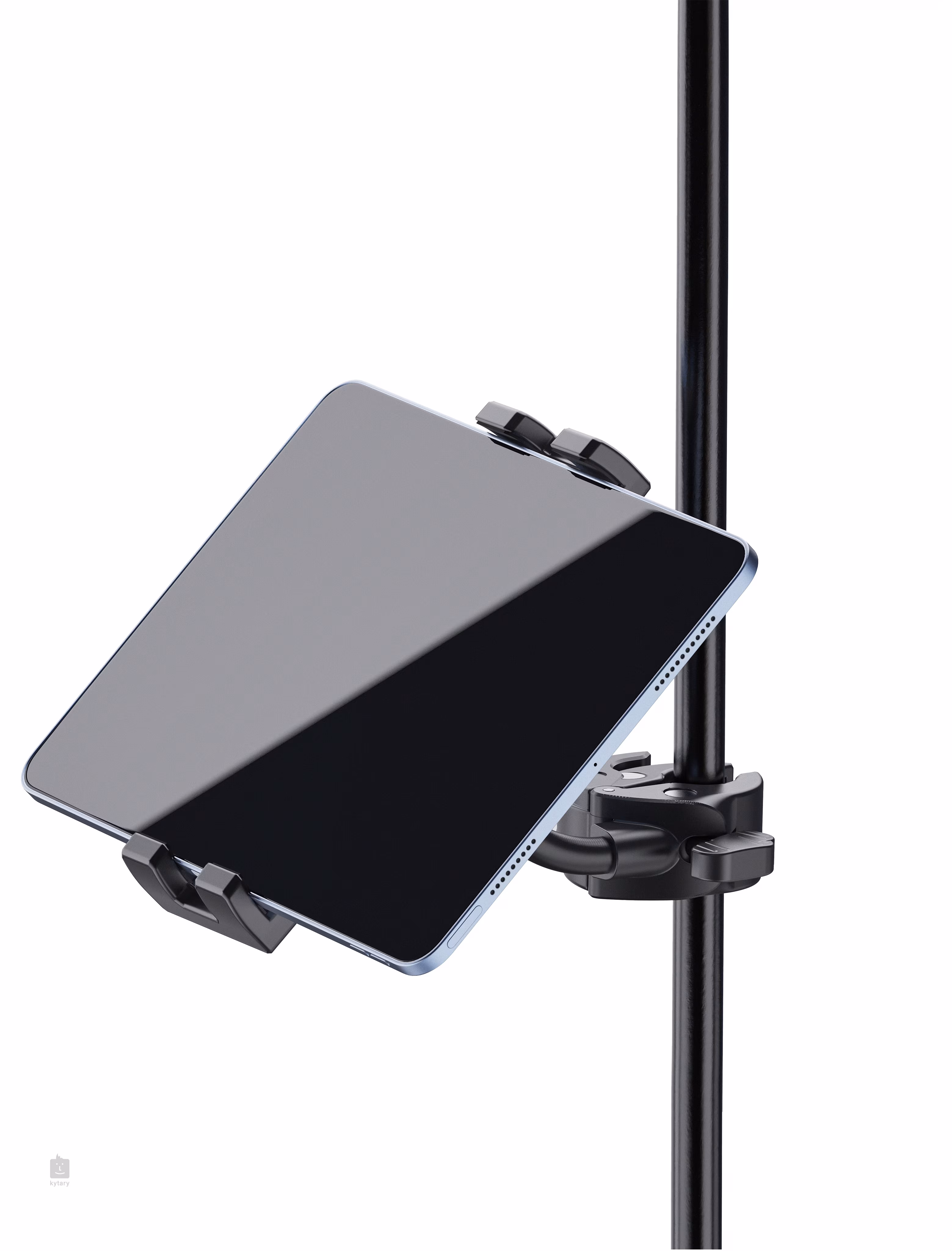 König & Meyer 19764 je držák vhodný pro smartphony i tablety. Šířka upnutí j emožná v rozmezí od 120 do 245 mm a díky hloubce 15 mm lze elektronická zařízení používat včetně silnějších krytů či pouzder. Ovládání je rychlé a snadné. Stačí od sebe odtáhnout upínací čelisti chráněné gumou a utáhnout je silou pružiny. Díky kulovému kloubu lze držák naklápět nahoru a dolů a otáčet o 360°. Flexibilní montážní rameno umožňuje další individuální polohování. Robustní upínací prvek s uživatelsky přívětivou křídlovou maticí umožňuje rychlou montáž na jakoukoli trubku o průměru 10 až 30 mm.