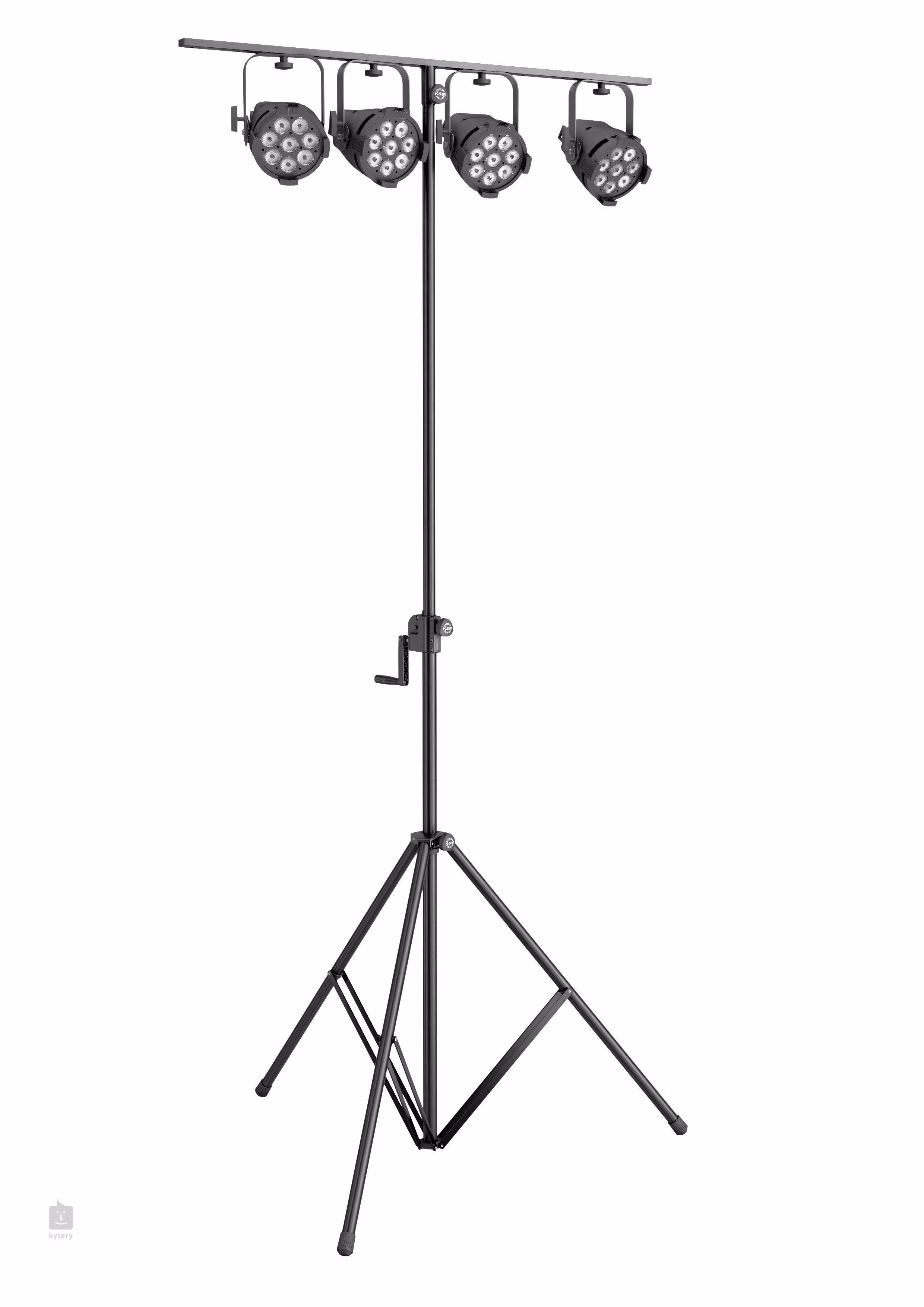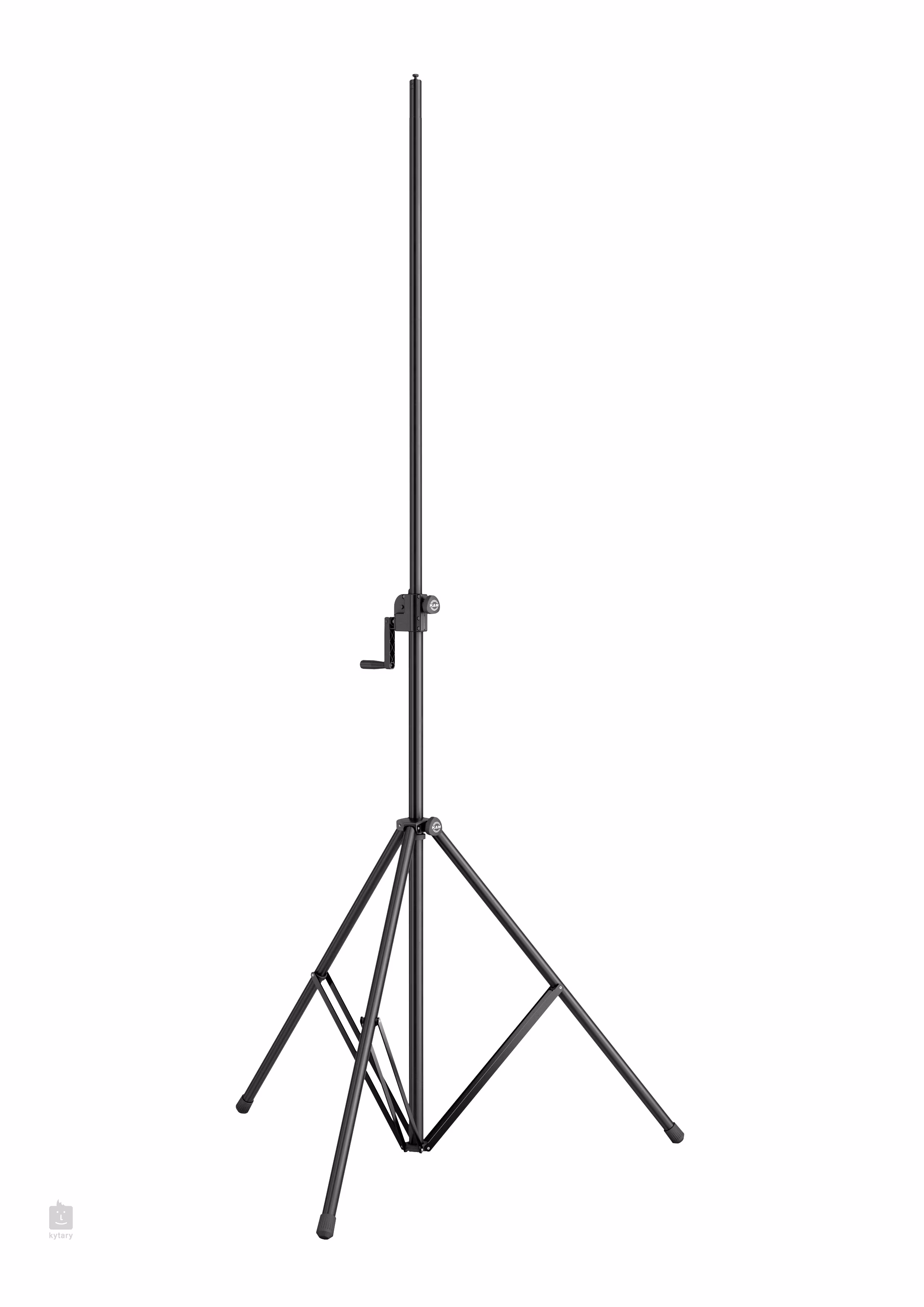 Profesionální stojan na světla nebo reproduktory König & Meyer 24615 je vyrobený z odlehčeného hliníku a zajišťuje vysokou stabilitu a flexibilní využití. Trojnohý podstavec s plastovým zakončením je velmi stabilní i na nerovném povrchu. Praktický samozamykací naviják s distanční tyčí vám umožní nastavit výšku stojanu v rozmezí od 175 cm do 3 m. Prostřednictvím integrovaného závitu M10 lze připevnit většinu světelných zařízení a příčníků na trhu, zatímco tyč o průměru 35 mm pojme všechny reproduktory s hnízdem 36 mm. Ideální volba pro mobilní využití i stálé instalace v menších klubech nebo studiích.