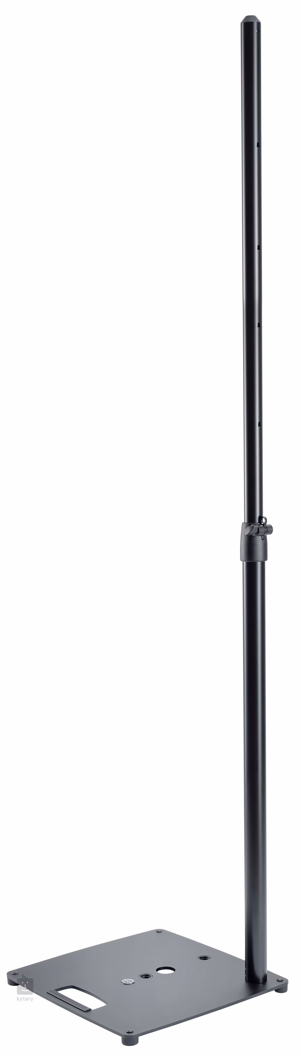 Díky ploché, ale robustní čtvercové základně z oceli je stojan ideální pro použití tam, kde je málo místa, nebo kde by klasická trojnožka nepůsobila dobrým estetickým dojmem. Základna je vybavena rukojetí pro přenášení, systémem vedení kabelů a čtyřmi stabilními nožičkami. Distanční tyč lze kvůli vyšší flexibilitě či stabilitě našroubovat buď klasicky uprostřed, mimo středovou polohu nebo také v rohu.