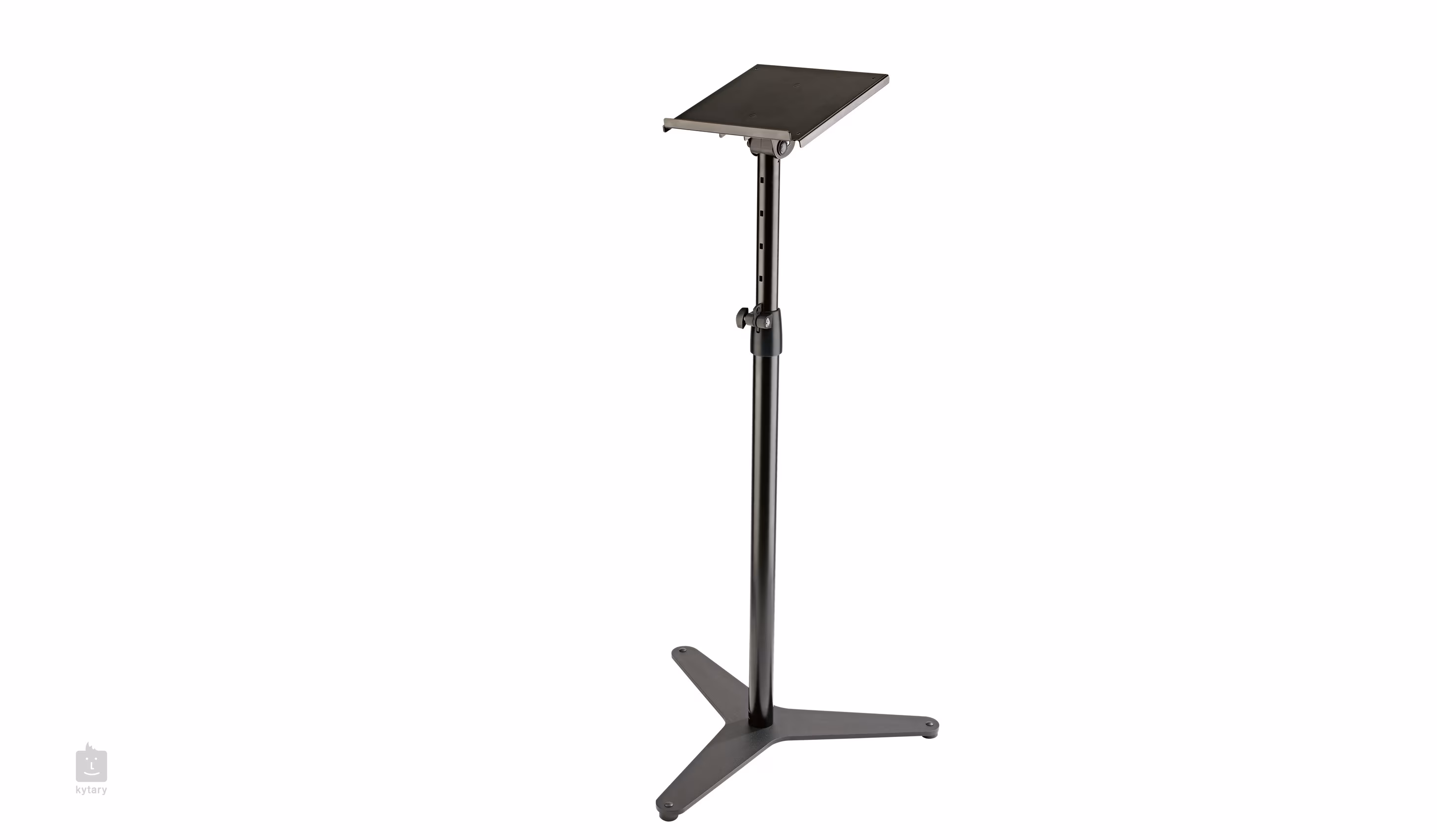 Elegantní podlahový stojan na studiové monitory s možností nastavení výšky po 50 mm intervalech. Vyroben z kvalitní oceli, spodní strana disponuje trojnohým podstavcem pro pevnou stabilitu a redukci nepříznivých vibrací. Plocha pro monitor je polohovatelná s možností naklonění o 12,5°.