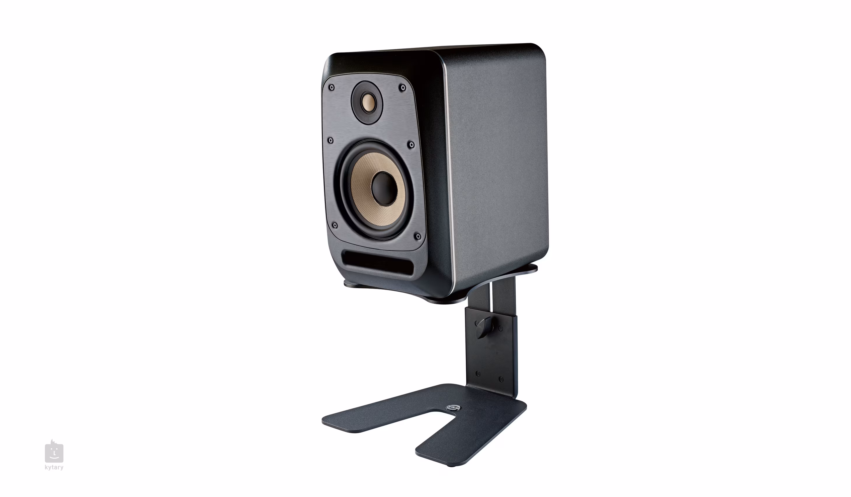 Elegantní stolní stojan na studiové monitory s možností nastavení výšky. Vyroben z kvalitní oceli, spodní strana disponuje čtyřmi gumovými nožičkami pro pevnou stabilitu a redukci nepříznivých vibrací.