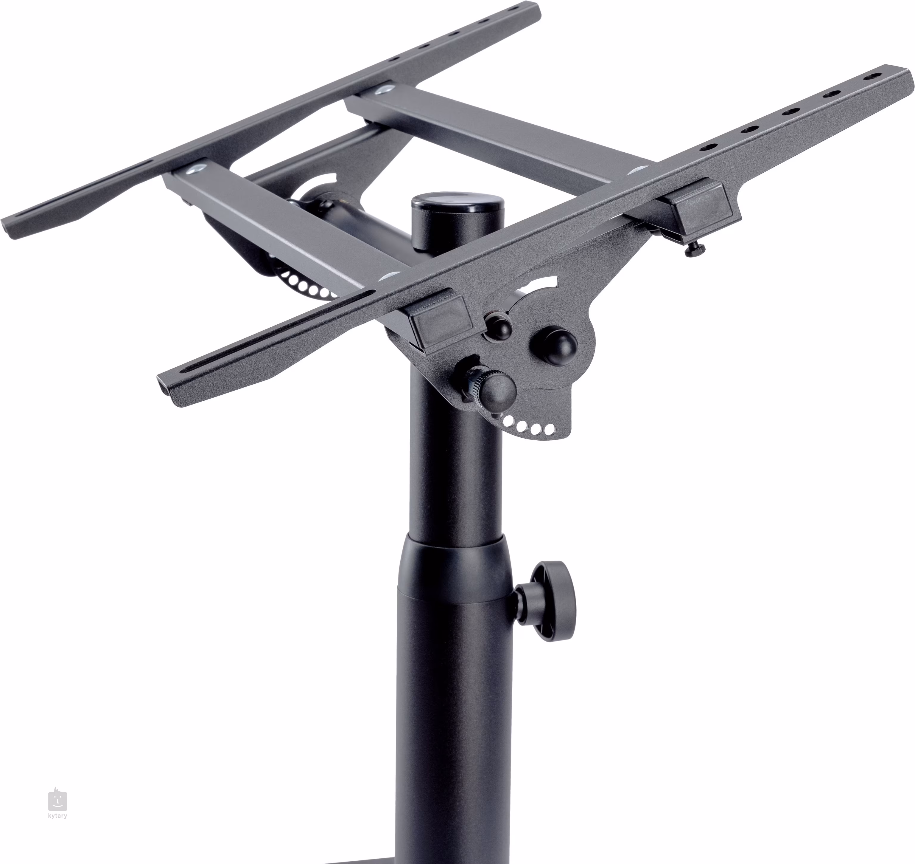 Díky dvoudílné skládací konstrukci lze stojan snadno transportovat a rychle připravit k použití. Povrchová úprava v strukturované černé barvě zajišťuje profesionální vzhled a vysokou odolnost při každodenním používání na pódiích, ve studiích nebo při eventových instalacích.