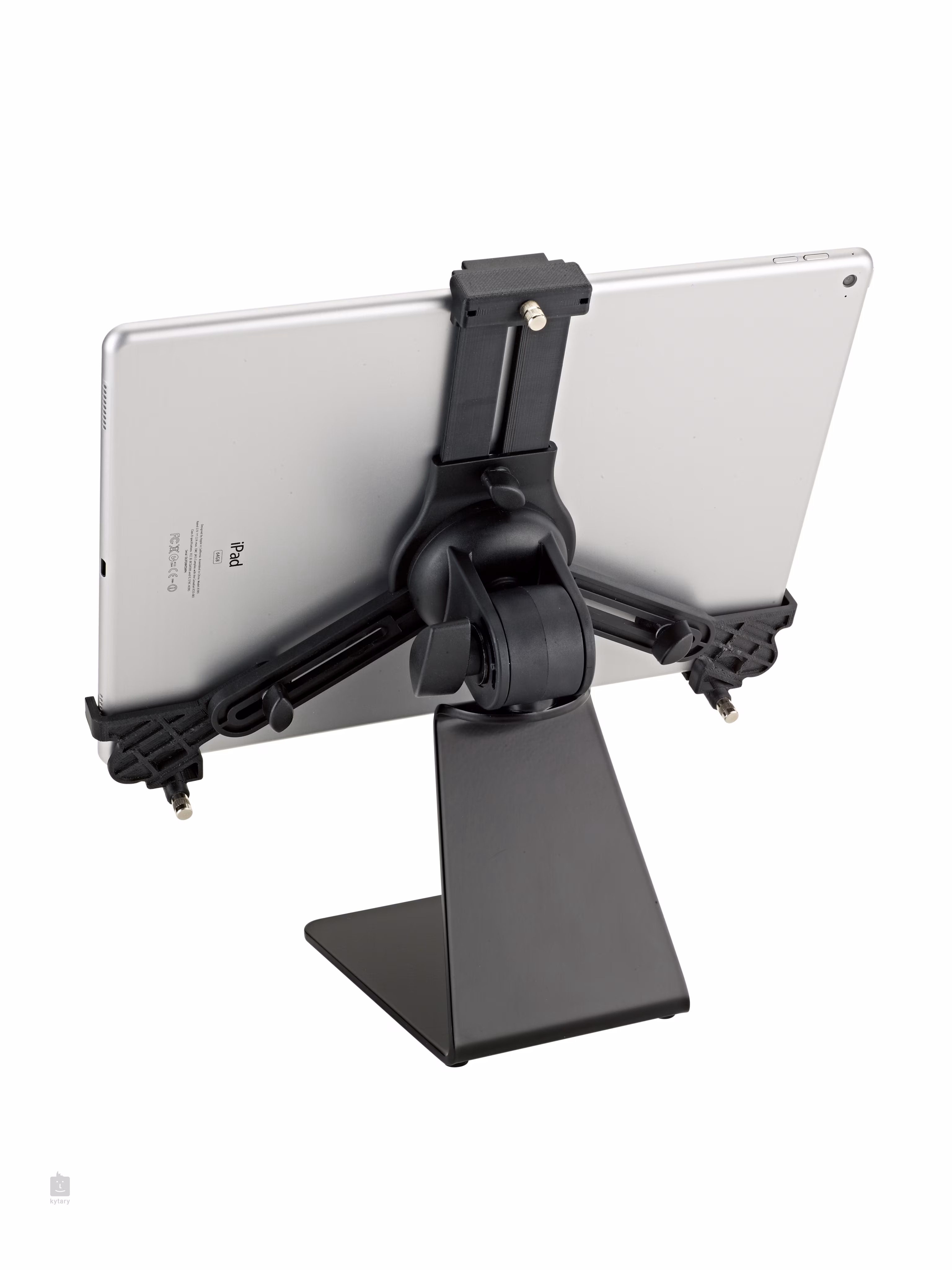 Tento stylový stolní stojan je kompatibilní se všemi tablety na trhu. Ocení ho především uživatelé, kteří používají tablet místo televize nebo laptopu. Stojan je vyroben kombinací odolného plastu a robustní oceli. Teleskopické držáky navíc můžete otáčet o 90 stupňů po všech směrech, takže tablet lze umístit do horizontální i vertikální polohy.