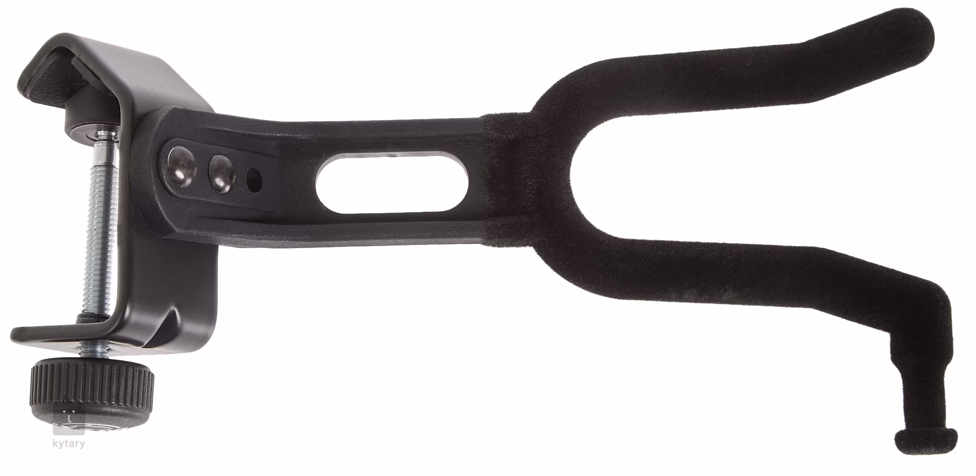 Tento praktický věšák na housle vám umožní mít svůj nástroj vždy bezpečně po ruce, ať už doma, na koncertě, nebo ve škole. Díky ocelové svorce s gumovými ochrannými prvky je možné věšák uchytit například k mikrofonnímu stojanu, nebo prakticky k jakékoliv trubce s průměrem do 30 mm. Vidlice je designovaná tak, aby nepřišla do styku s ladícími kolíčky a zároveň zabránila nechtěnému vyklouznutí nástroje, díky čemuž zůstane váš nástroj v bezpečí a dokonale naladěný. Na boční straně najdete také držák na smyčec, samozřejmostí je pak měkký povrch, který nástroj ochrání před škrábanci.