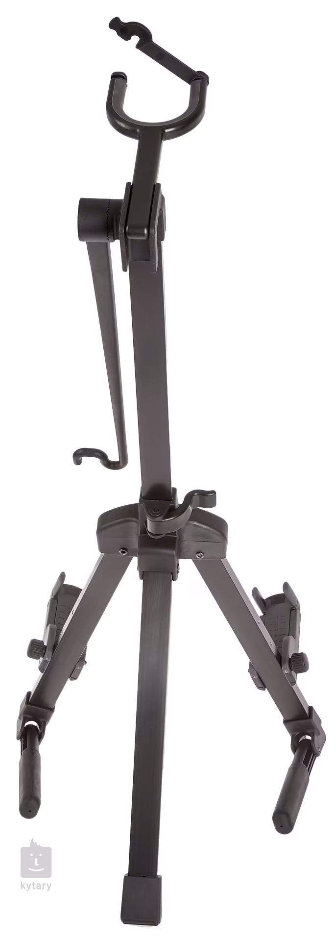Kompaktní a stabilní hliníkový stojan na housle. Opora krku i ramena jsou výškově nastavitelná, díky čemuž je stojan vhodný pro nástroje v široké škále velikostí. Všechny kontaktní místa jsou potažena speciálním měkkým plastem, který zabrání poškození laku nástroje, uzamykací opora krku mu pak poskytne extra ochranu. Samozřejmostí je pak také integrovaný držák na smyčec. Součástí balení je také nylonový obal.