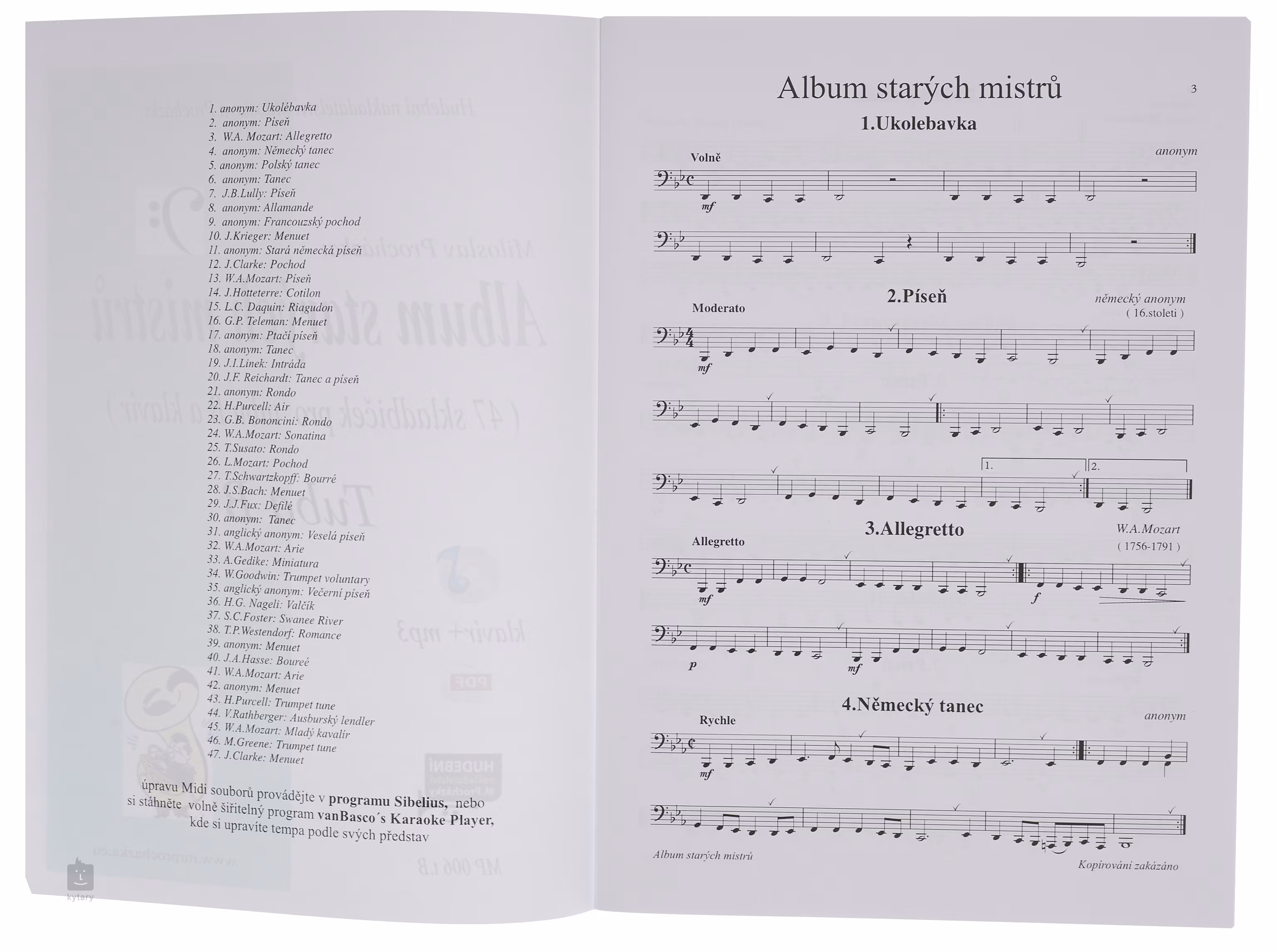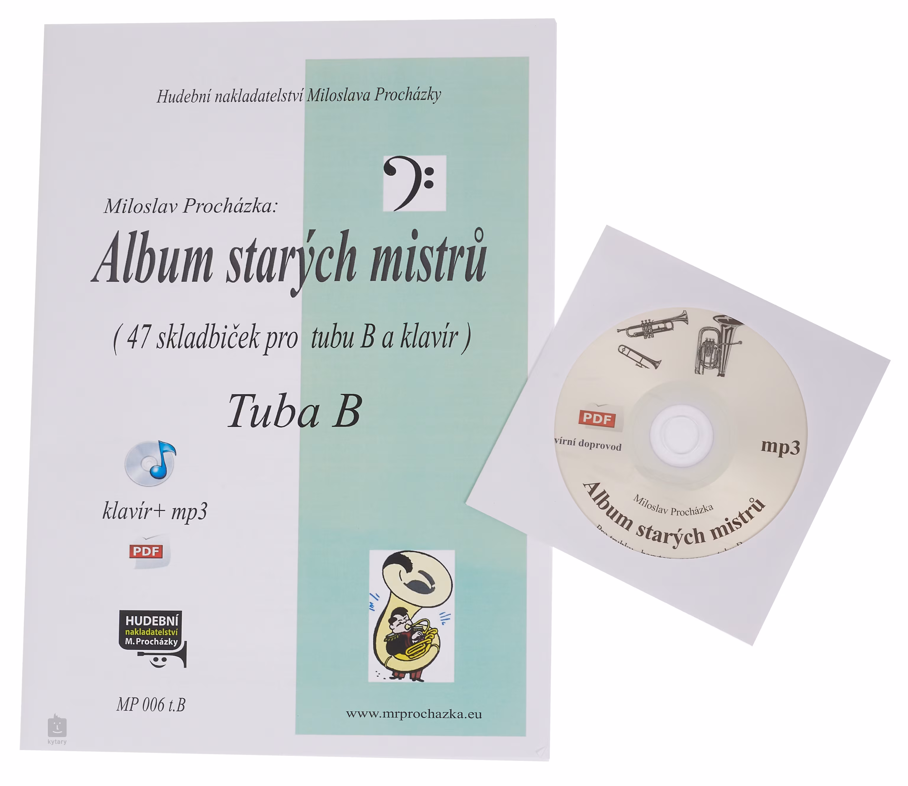 Publikace Album starých mistrů pro tubu in B a klavír + CD obsahuje 47 skladeb pro B tubu a klavír řazených podle obtížnosti. Součástí balení je CD s nahranými podklady v MIDI formátu pro notační program a klavírní part v PDF formátu.