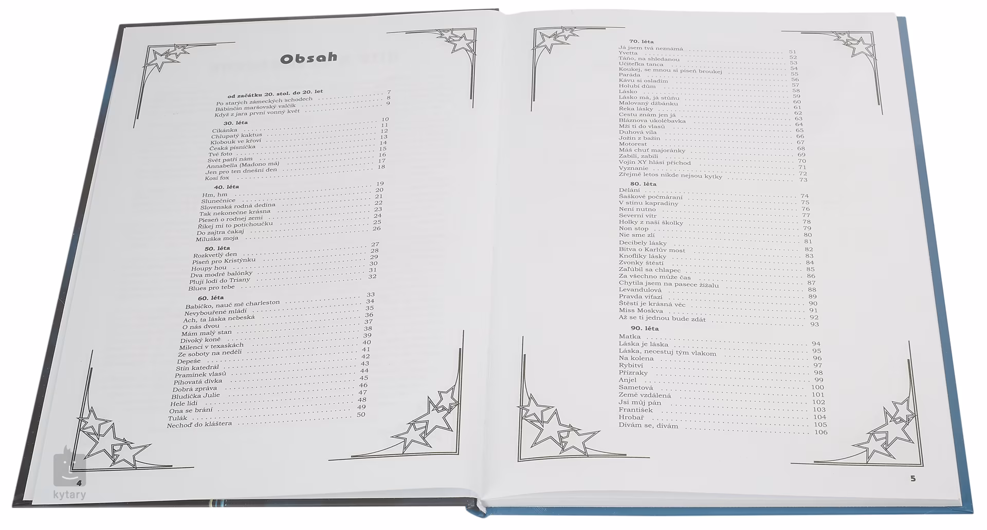 České a slovenské hity 20. století - 1.díl, A4,váz, 120 str., 100 písní. První stovka nejznámějších písní populární hudby od začátku století do současnosti (Po starých zámeckých schodech, Slunečnice, Ach, ta láska nebeská, Bludička Julie, Kávu si osladím, Levandulová, Rybitví, František a další) s vloženým grafem “Vývoj jazzu a moderní populární hudby“