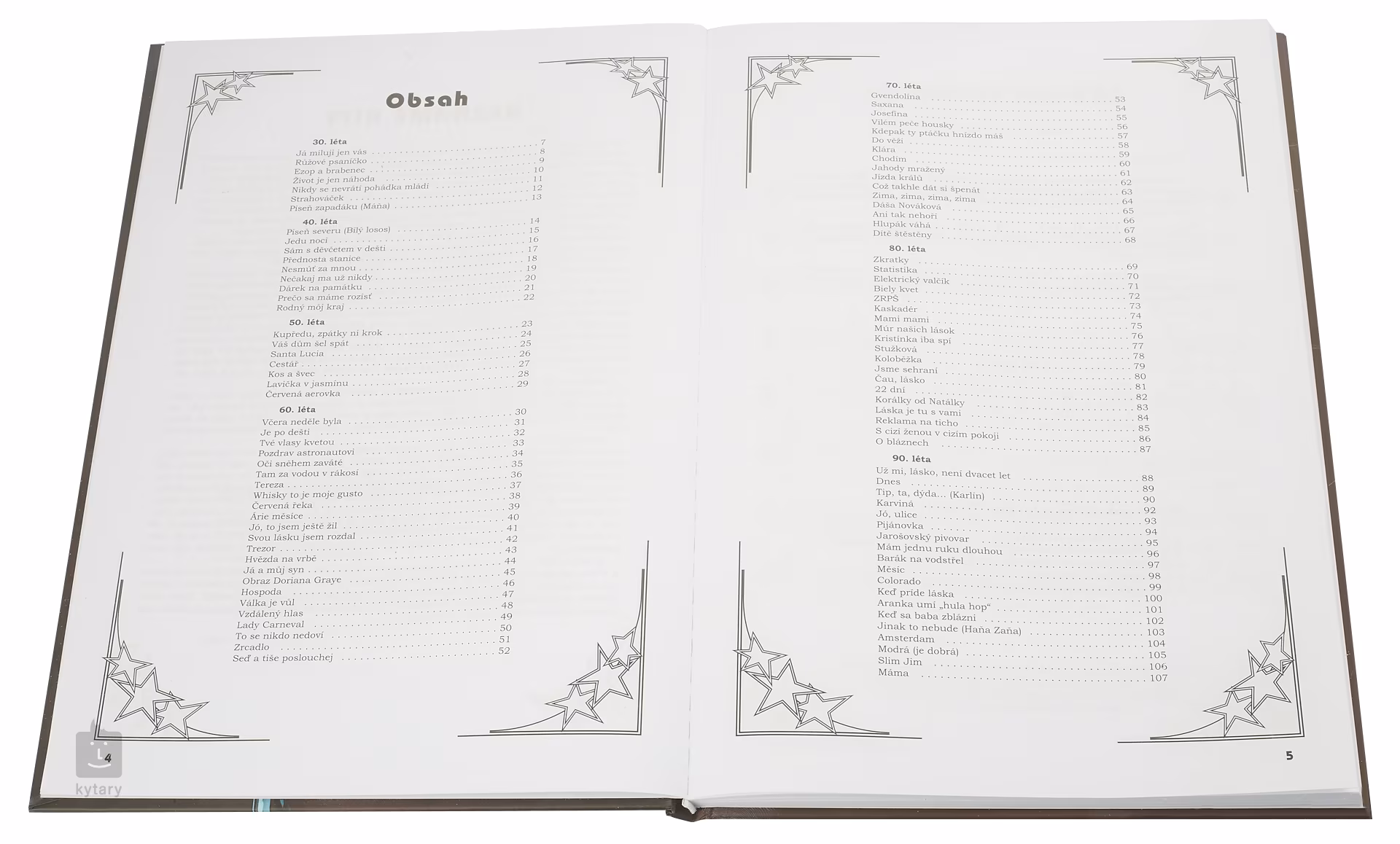 Druhá stovka nejznámějších písní populární hudby od začátku století do současnosti (Život je jen náhoda, Cestář, Tam za vodou v rákosí, Jahody mražený, Elektrický valčík, Kristínka iba spí, Aranka umí „hula hop“ a další) s vloženým grafem "Rozdělení zvukového spektra"