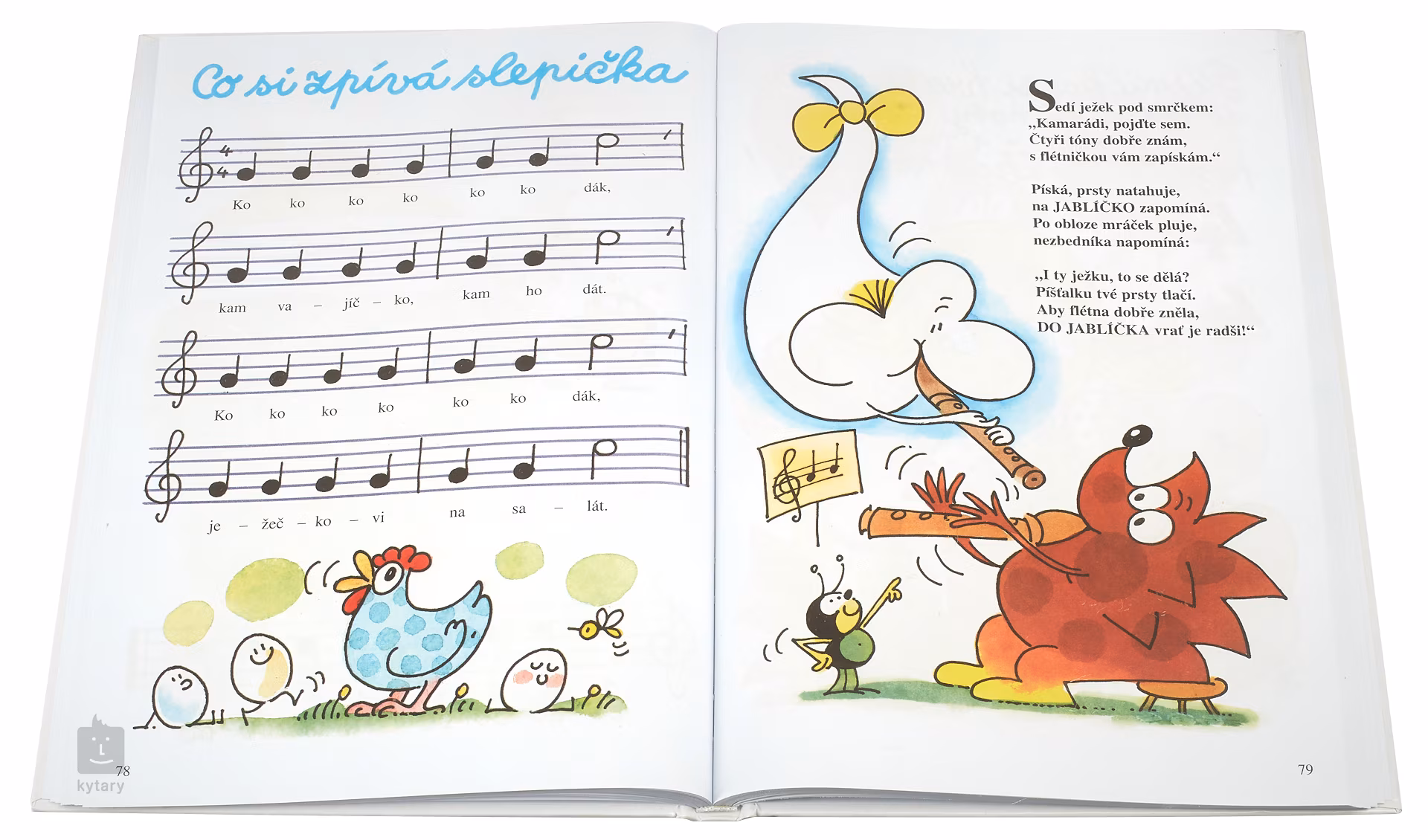Zábavná škola na sopránovou zobcovou flétnu pro nejmenší, s veršovanou pohádkou a písničkami, bohatě ilustrováno Milošem Nesvadbou.