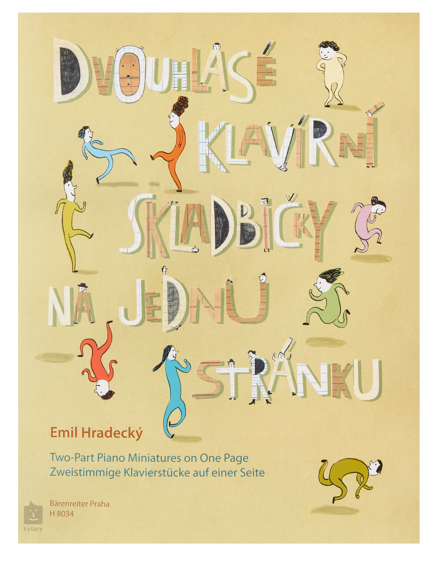 Podstatná část tvorby českého skladatele a pedagoga Emila Hradeckého (*1953) je věnována dětem a tvorbě pro klavír a často je inspirována jazzem. Dvouhlasé klavírní skladbičky na jednu stránku jsou nápadité klavírní miniatury pro začátečníky, snadno hratelné, melodicky zajímavé a vtipně komponované skutečně jen do dvou hlasů, pro každou ruku jeden.