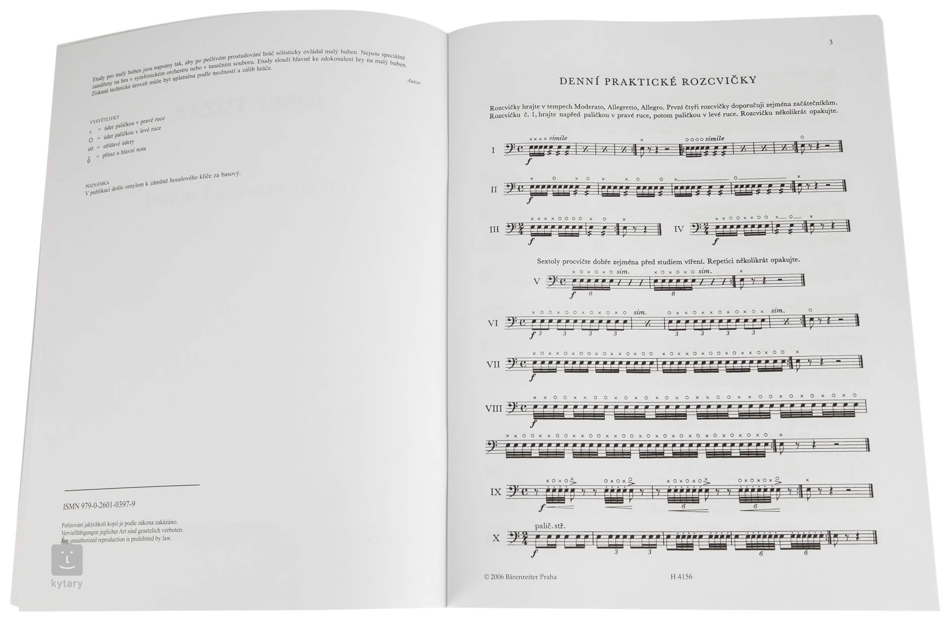 Etudy představují elementární výukový materiál pro zvládnutí hry na malý buben. Autor záměrně nerozlišuje mezi přípravou ke hře populární a taneční hudby a hrou v symfonickém orchestru. Jeho cvičení jsou ryze technická, slouží ke zvládnutí nástroje a získaná technická úroveň pak může být uplatněna ve všech oborech.