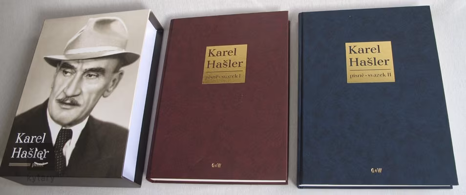 KAREL HAŠLER (31. října 1879, Zlíchov – 22. prosince 1941, Mauthausen) Kdo by neznal Českou písničku a nezpíval si Andulko, Anduličko, Nad Prahou tančily hvězdičky, Když mě má panenka nechce ráda mít, Až já půjdu do nebe, Po starých zámeckých schodech nebo Bílý kvíteček? Určitě se každému ještě vybaví nápěvy dalších Hašlerek: Já mám holku od Odkolků, U svatého Matěje, Copak je to za vojáka, Tulák, Starý dům, Muziky, muziky, Staré topoly, Strahováček, Před Vejtoňkou hospodou, Páni muzikanti i Vltavo, Vltavo. Dvousvazkový Zpěvník Karla Hašlera představuje zatím nejobsáhlejší vydání písňové tvorby geniálního českého písničkáře. Obsahuje celkem 324 písní, z nichž 270 napsal Karel Hašler sám, na 44 se autorsky podílel, osmkrát otextoval známé melodie a dvě písně inspiroval. Zpěvník Karla Hašlera dále obsahuje deset autorových básní z let 1918–1940, řadu neznámých fotografií a dokumentů ze soukromých archívů, kompletní soupis autorova díla a životopis v datech. O Karlu Hašlerovi se zde v různých souvislostech rozepsali Přemysl Rut, Gustav Oplustil, Gabriel Gössel a Radan Dolejš. Přílohou zpěvníku je CD Hezká vzpomínka, na kterém písně Karla Hašlera nahrála a nazpívala skupina Patrola Šlapeto a s ní i řada hostů jako Josef Zíma, Václav Postránecký, Jiří Lábus, Monika Absolonová, Richard Tesařík, Jiřina Jirásková, Petr Muk, Karel Zich a další.