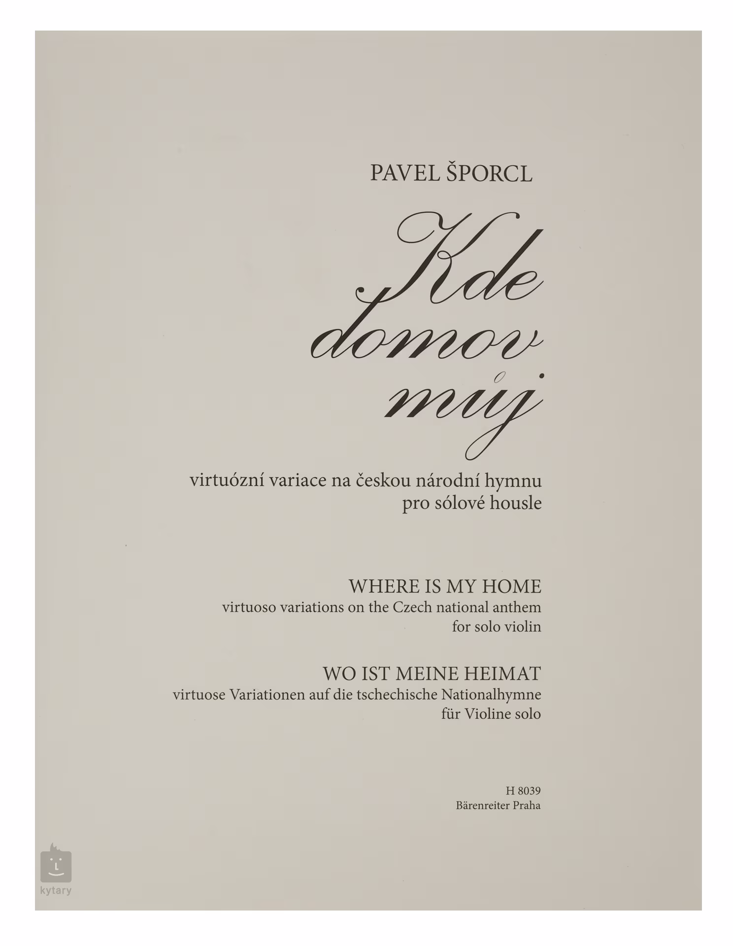 Virtuózní variance na českou národní hymnu pro sólové housle Kde domov můj z pera slavného českého houslisty Pavla Šporcla, které věnoval své rodné zemi. Publikace slouží jako povzbuzení novým generacím českých houslistů i jako hudební pozdrav muzikantům celého světa. Houslistům poskytuje v úvodu notového vydání komentář k interpretaci: ...Základní plán kompozice, který by se měl při interpretaci vždy dodržet, tvoří introdukce, téma, variace č. 1, 3 a 6 (z celkových osmi) a finále. Výběr dalších variací při koncertním uvedení záleží na volbě každého interpreta.