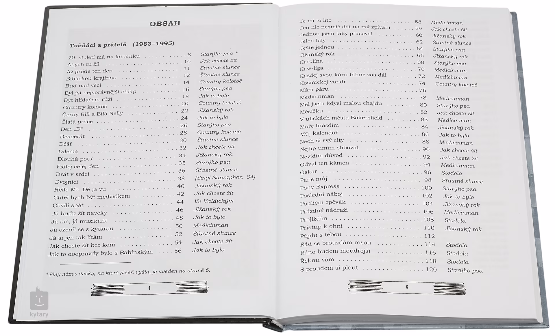 Osm desítek známých i méně známých písní Michala Tučného s Tučňáky a přáteli (Já budu žít navěky, Jak chcete žít bez koní, Kosmickej vandr, Rád se brouzdám rosou, Všichni už jsou v Mexiku a další). Noty, texty, akordy, hmaty. Velké množství fotografií. Obálka Karla Kopice.