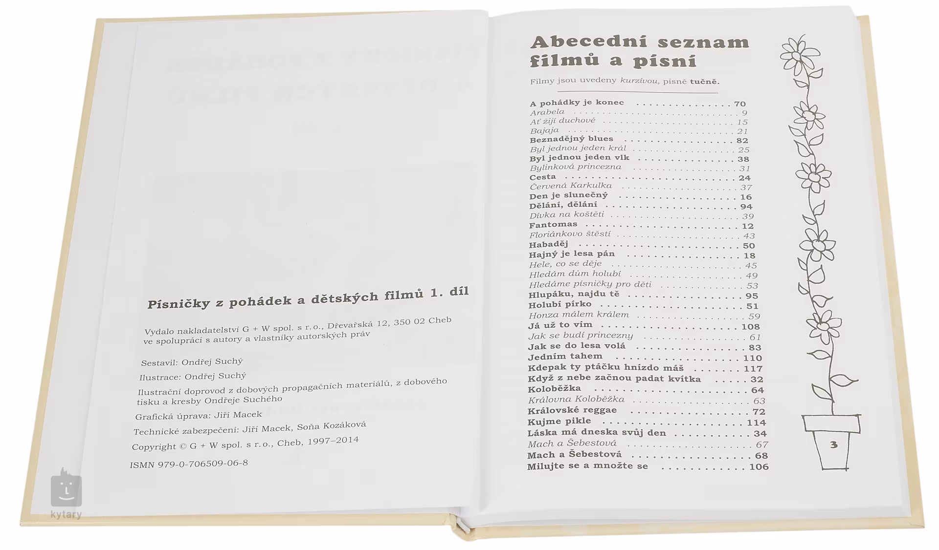 Písničky z pohádek 1- písně z nejznám. poh. a děts.filmů (cca 50 písní). Slavné písně a melodie z dětských filmů 50. až 90. let, které si zpívají děti i dospělí. Známý herec, zpěvák a filmový historik Ondřej Suchý výběr sestavil a opatřil zajímavým povídáním.