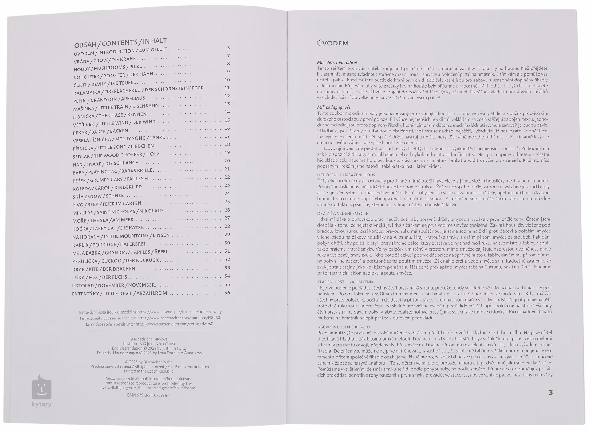 Obsahem publikace jsou jednoduché několikataktové melodie zapsané pro děti nestandardně většími notami. Melodie jsou zaměřeny na procvičování durového prstokladu v první poloze. Každá skladbička doplněna říkadlem, které dětem usnadní zvládnutí rytmu, a navíc je bude hra bavit. Skladbičky jsou řazeny zhruba podle obtížnosti, v závěru se nachází nejtěžší, vyžadující již hru legato.