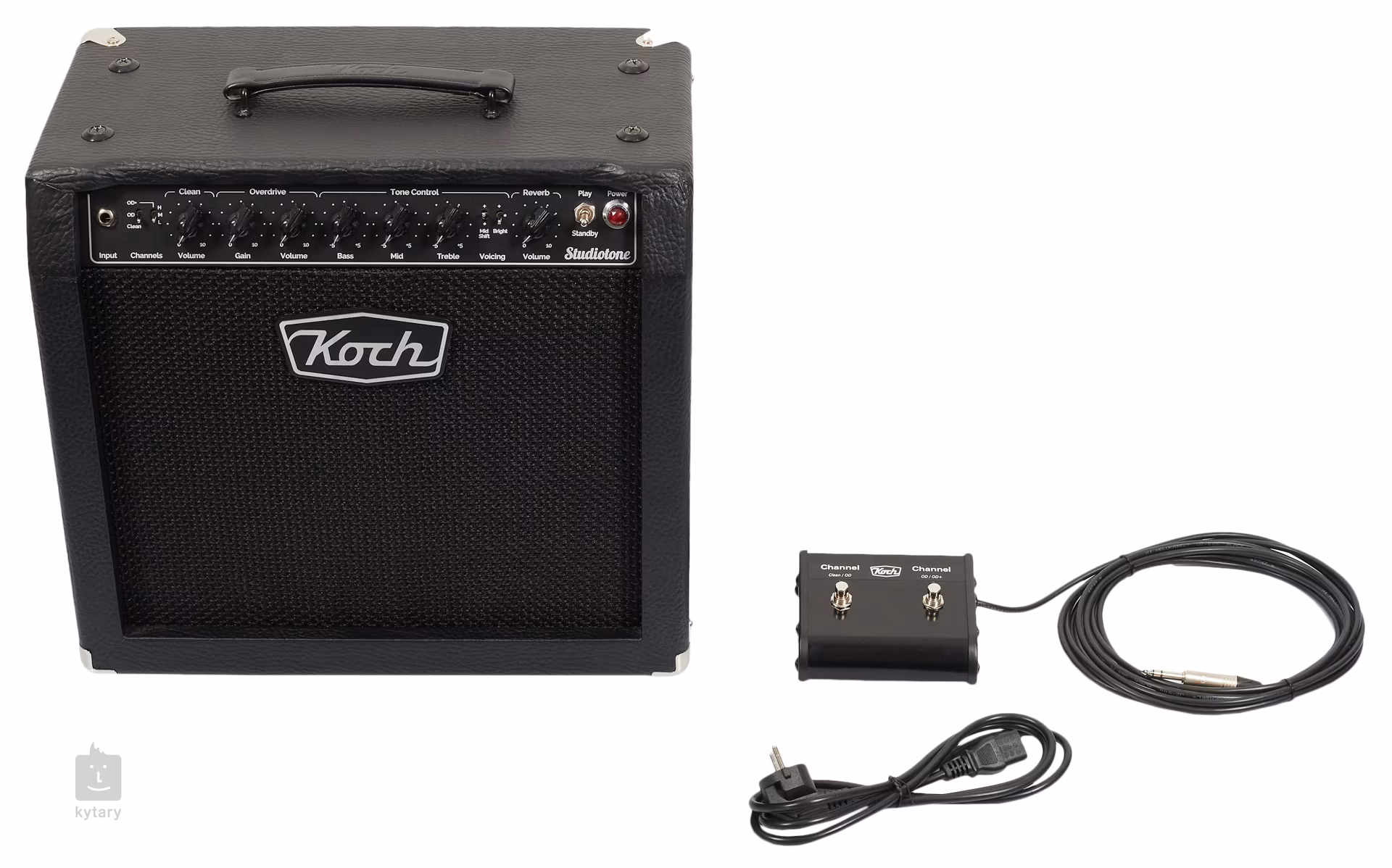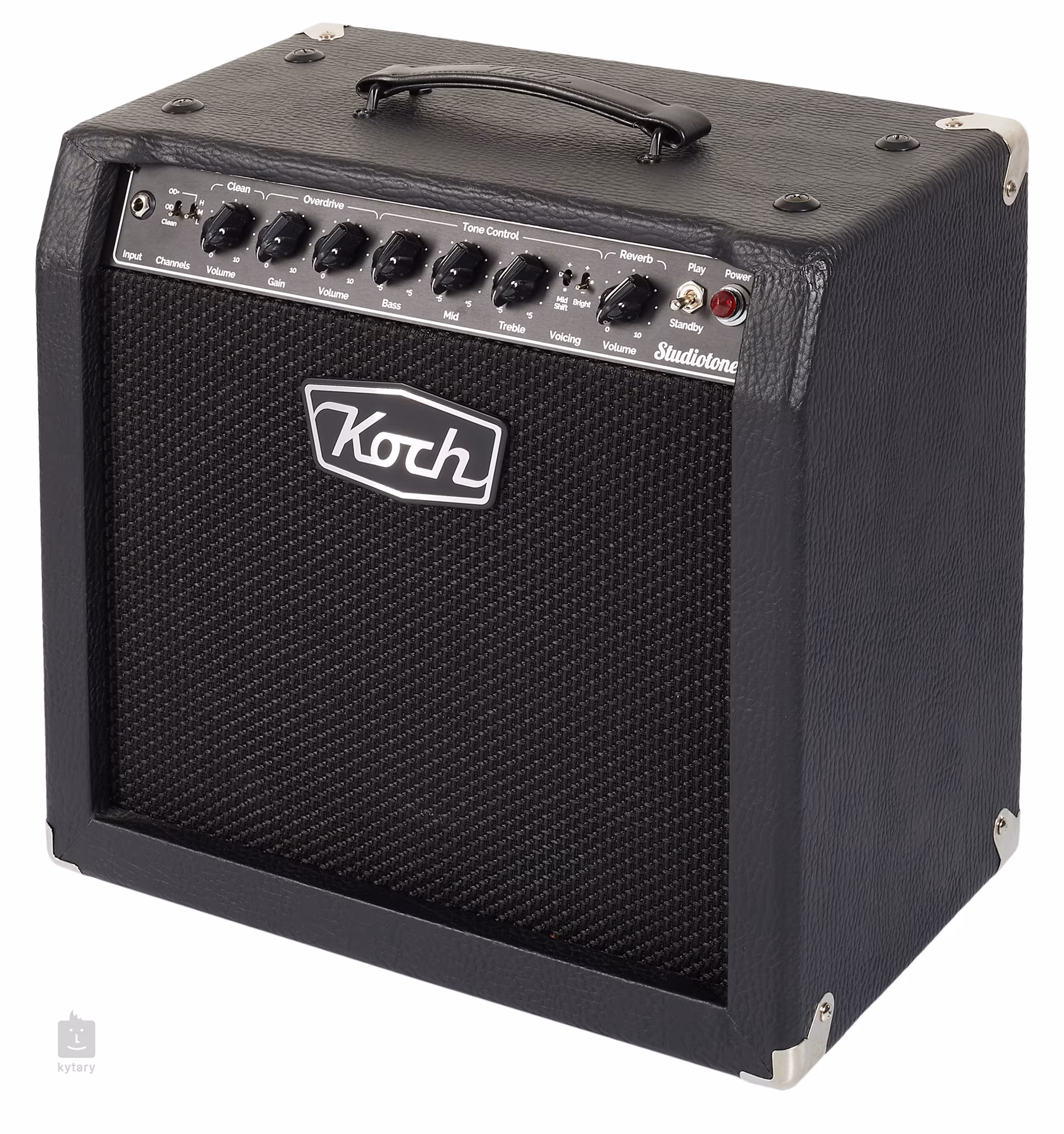 Kytarové lampové kombo Koch Studiotone 20 Combo nabízí parádní zvuk s charakterem britských aparátů ze šedesátých let a zároveň i více funkcí, než by mohl napovídat jeho kompaktní tvar. Jedná se o aparát s Class A koncovým stupněm, výkonem 20 wattů, nově navrženým designem zakázkového reproduktoru a kabinetu a třemi footswitchem přepínatelnými kanály.