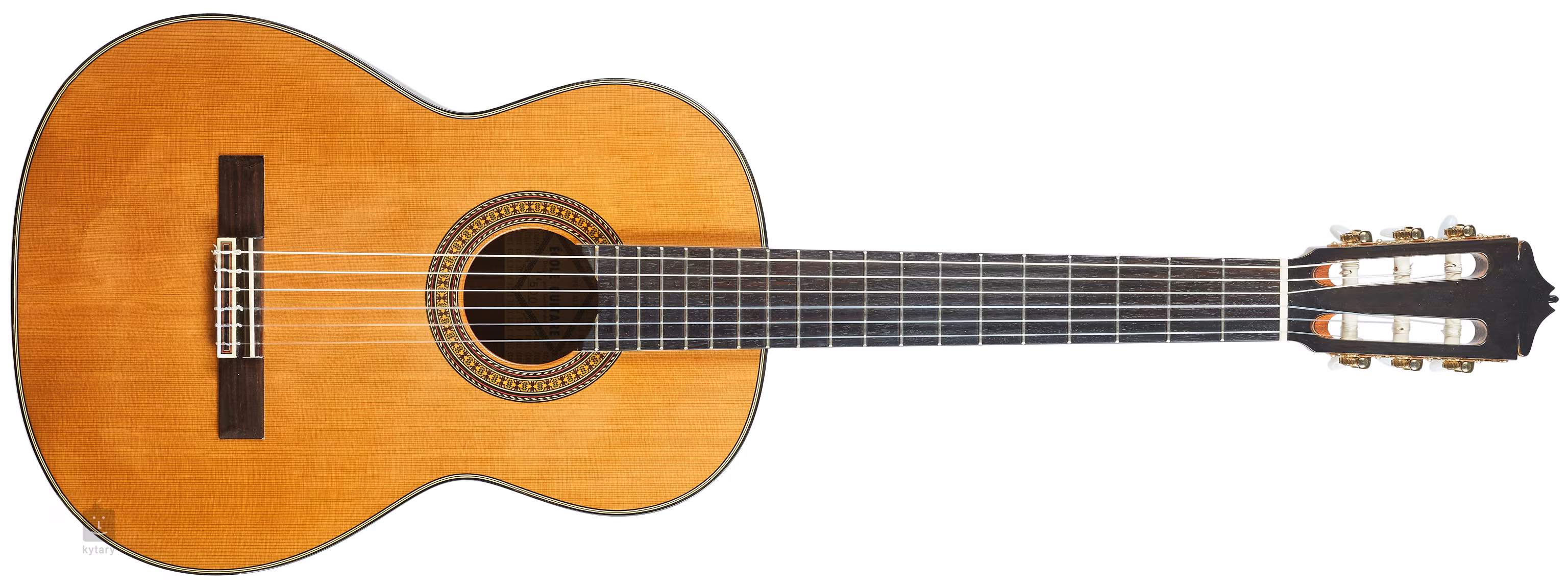 Polomasivní klasická španělka o velikosti 7/8 (menzura 630 mm) vyrobená v japonské továrně Kodaira Gakki pravděpodobně v 80. letech minulého století, možná dříve.
