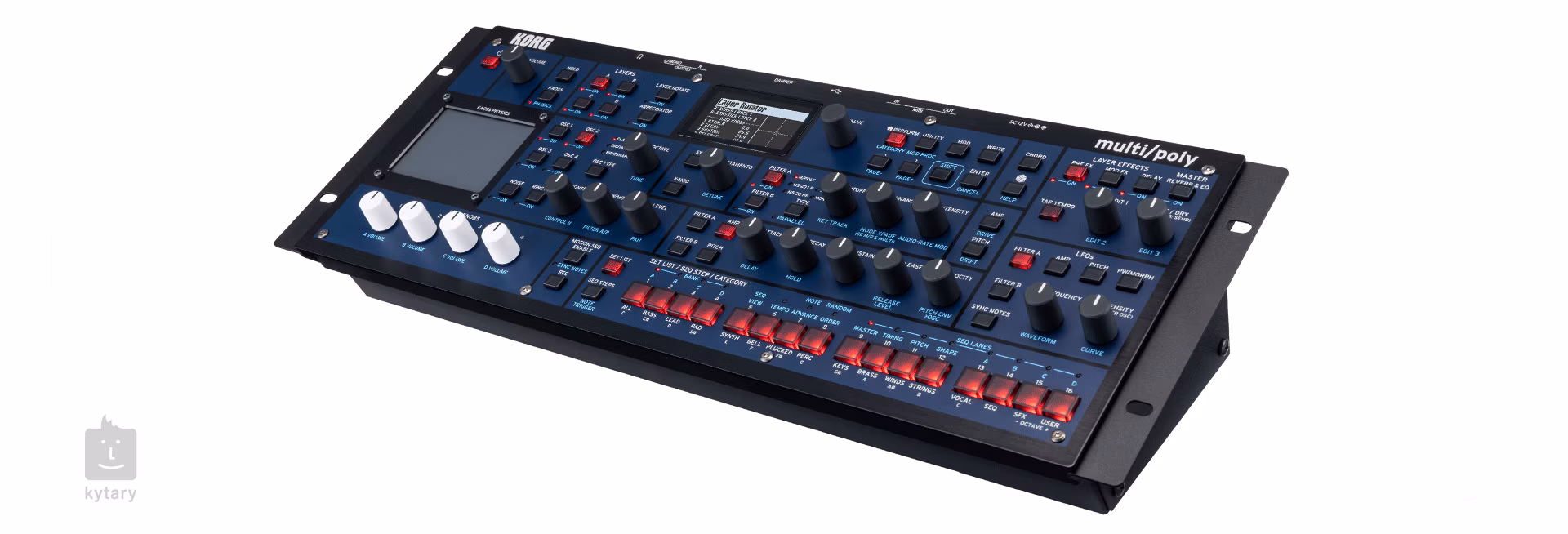 KORG Multi/Poly Module představuje spojení bohatého analogového zvuku s moderní digitální flexibilitou. Desktop / rackmount verze je inspirována legendárním syntezátorem Mono/Poly a nabízí analogové modelování nové generace včetně oscilátorů East-coast, West-coast i wavetable. Nechybí široký výběr nově modelovaných filtrů, stejně jako modely různých obálkových, VCA a portamentových obvodů.