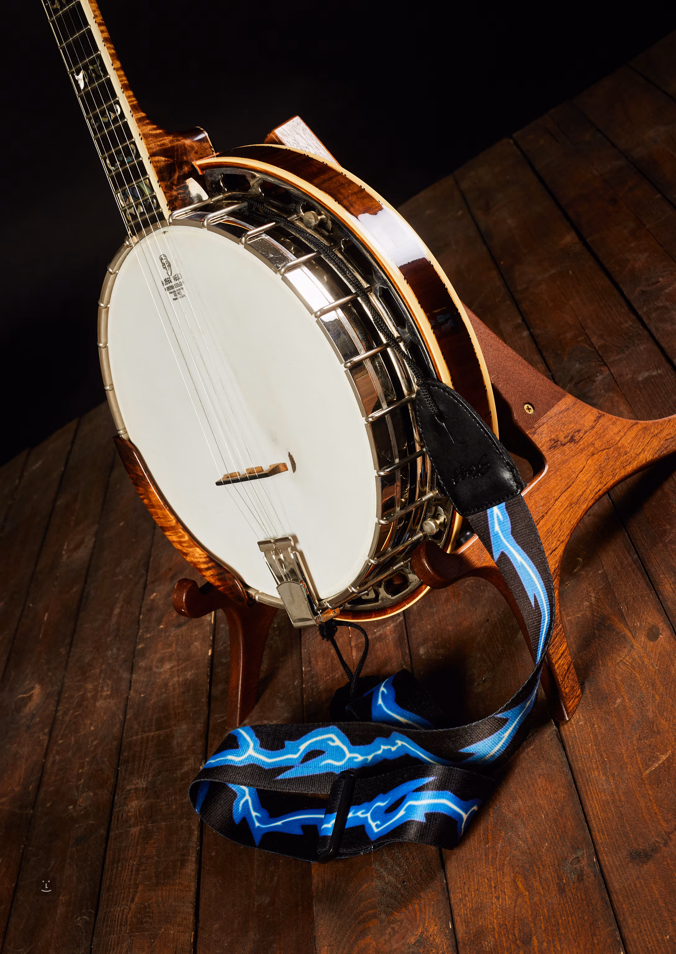 Pětistrunné banjo od slovenského výrobce Michala Kováčika. Velmi dobrý stav, hraný nástroj, o který bylo dobře pečováno.