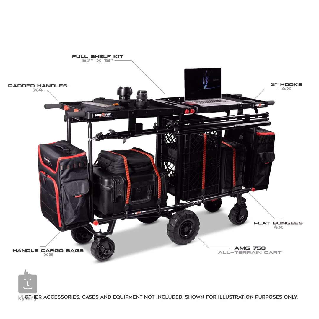 KRANE AMG 750 Shooter Rig oproti klasické verzi obsahuje speciální kolečka s větším vzorkem, takže bez problému odvezete vaši aparaturu či nástroje přes rozbahněnou nebo kamennou cestu. Vozík disponuje párem 10“ koleček pro maximální stabilitu a čtveřicí menších 6“ koleček s uzamykatelným systémem pro lepši manipulaci a bezpečnost.