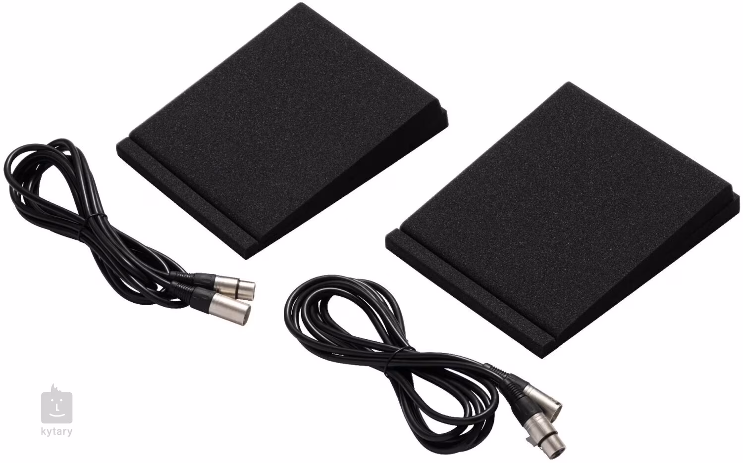 Set studiových monitorů obsahuje dva monitory KRK CLASSIC 5, dva signálové kabely XLR-M - XLR-F, dva napájecí kabely 230V a dvě izolační podložky pod monitory Split Foam.