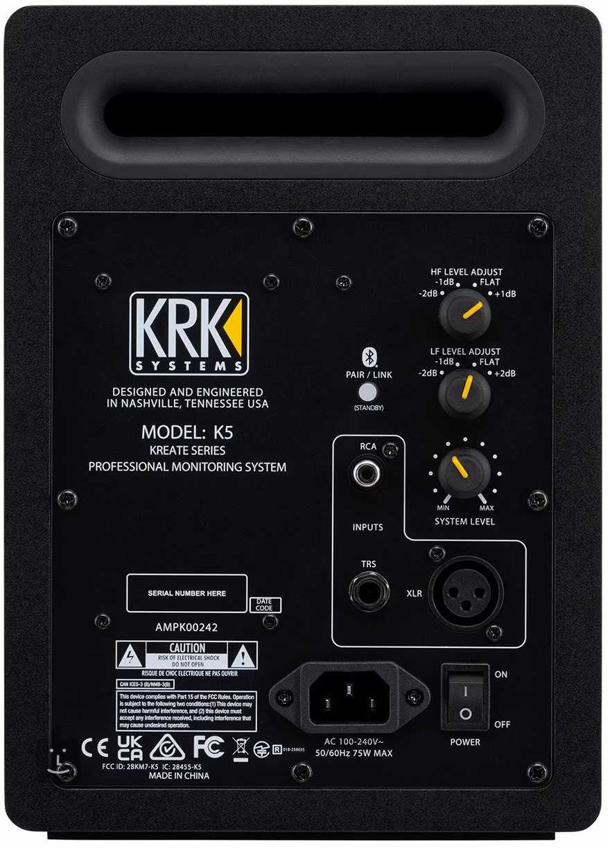 KRK Kreate 5 Scarlet nabízí flexibilní připojení pomocí kombinovaného XLR/TRS vstupu, RCA i Bluetooth 5.3 TWS, což umožňuje bezdrátové přehrávání z mobilních zařízení bez nutnosti kompromisů na kvalitě.