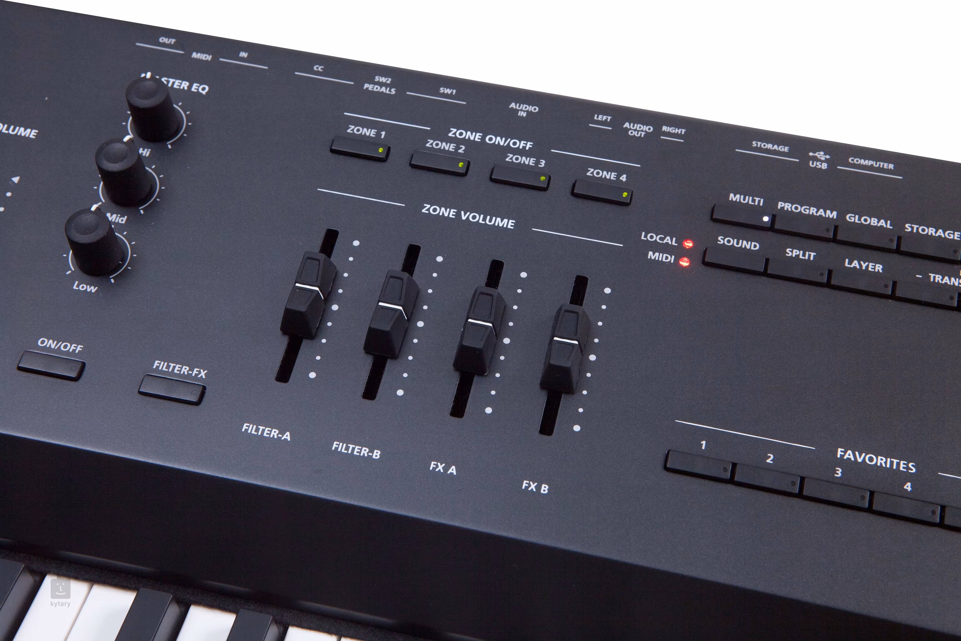Základem při vývoji Artis SE bylo nabídnout maximální zvukovou kvalitu, proto jsou použity klavírní samply German 9' Grand Piano a další zvuky z oblíbených nástrojů série PC3K a rozšiřující karty KORE 64. V Artis SE najdete celkem 256 továrních zvuků, mezi kterými nechybí kolekce klavírů, vintage elektrických pian, klavinetů, syntezátorů, smyčcových a orchestrálních zvuků, kytar, perkusí a dalších zvuků. 128 továrních multiprogramů kombinujících až 4 zvuky na rozdělené klaviatuře vám dodá bezmeznou inspiraci. To ve spojení s mnoha efekty a třípásmovým ekvalizérem představuje neuvěřitelnou zvukovou všestrannost. Pohodlný ovládací panel nabízí mimo jiné 4 slidery, kterým lze přiřadit jakoukoliv funkci a také 6 tlačítek pro snadné uložení a vyvolání vašich oblíbených zvuků. Volný prostor na pravé straně ovládacího panelu lze velmi prakticky využít pro umístění zvukového modulu, MIDI kontroleru, kompaktního notenooku nebo mixážního pultu při živém hraní.