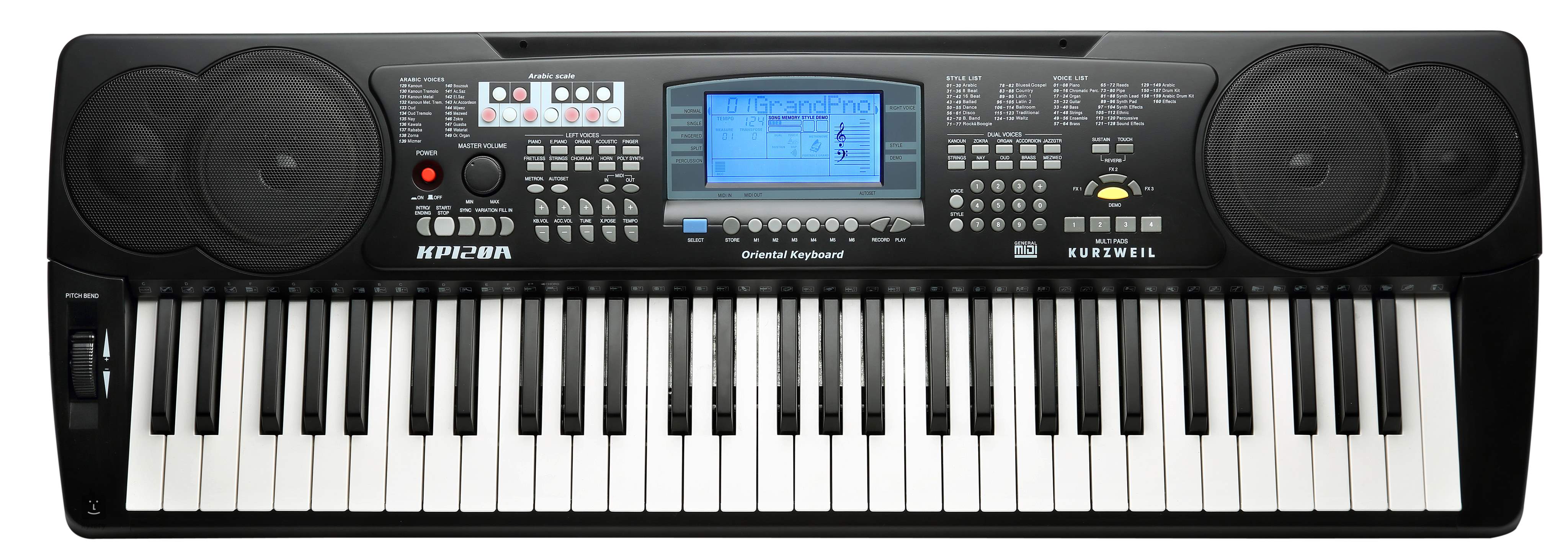 Kurzweil KP120A Oriental Keyboard jsou klávesy s dynamikou úhozu a nastavitelnou citlivostí klaviatury. Disponují rozsahem pěti oktáv (61 kláves). Nabízí 160 kvalitních firemních presetů s charakterem klávesových (piana, varhany, syntetizéry) strunných (kytary, baskytary, smyčce), dechových (dřevěné, žesťové), perkusních nástrojů a širokou škálu orientálních/etnických nástrojů včetně perkusí. Dvanáct speciálních tlačítek vám umožní zvolit v reálném čase požadovanou arabskou/orientální stupnici (každé tlačítko je přiřazeno k jednomu z půltónů chromatické stupnice).