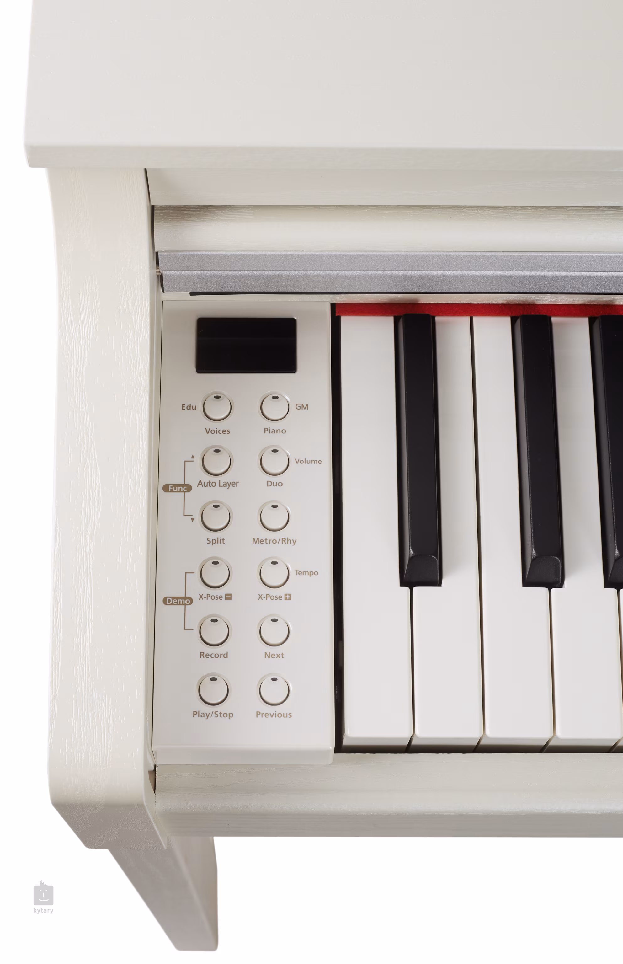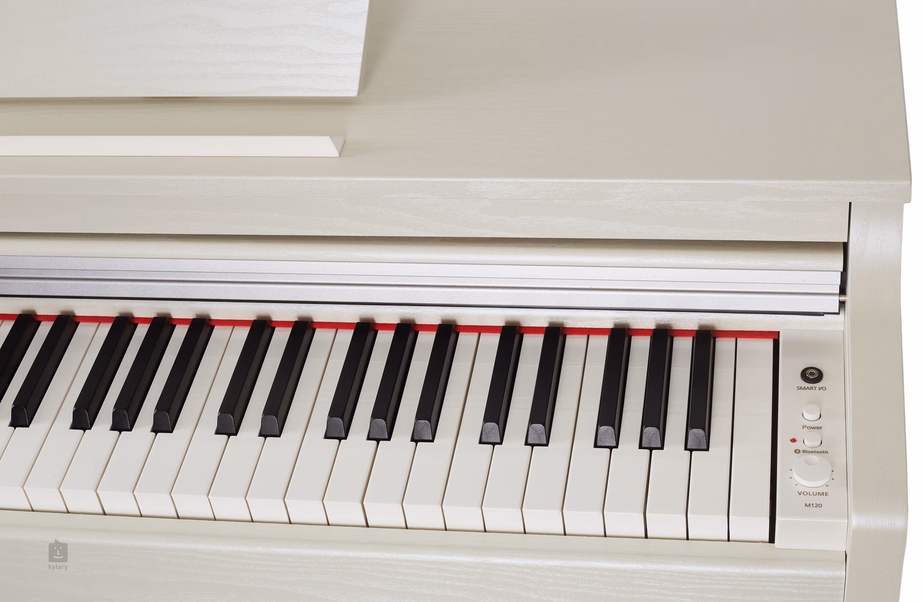 M120 od známé společnosti Kurzweil je velmi kvalitní a designově zajímavé piáno. O skvělý pocit ze hry se postará kladívková mechanika s nastavitelnou sensitivitou všech 88 kláves. K dispozici je působivá polyfonie 256 hlasů, třicet presetů, metronom nebo výukové programy. Kromě toho oceníte širokou paletu konektivity, ať už se jedná o USB, smart i/o nebo Bluetooth. Při hře s jinými nástroji může přijít vhod naladitelný rozsah 427 – 453 Hz.