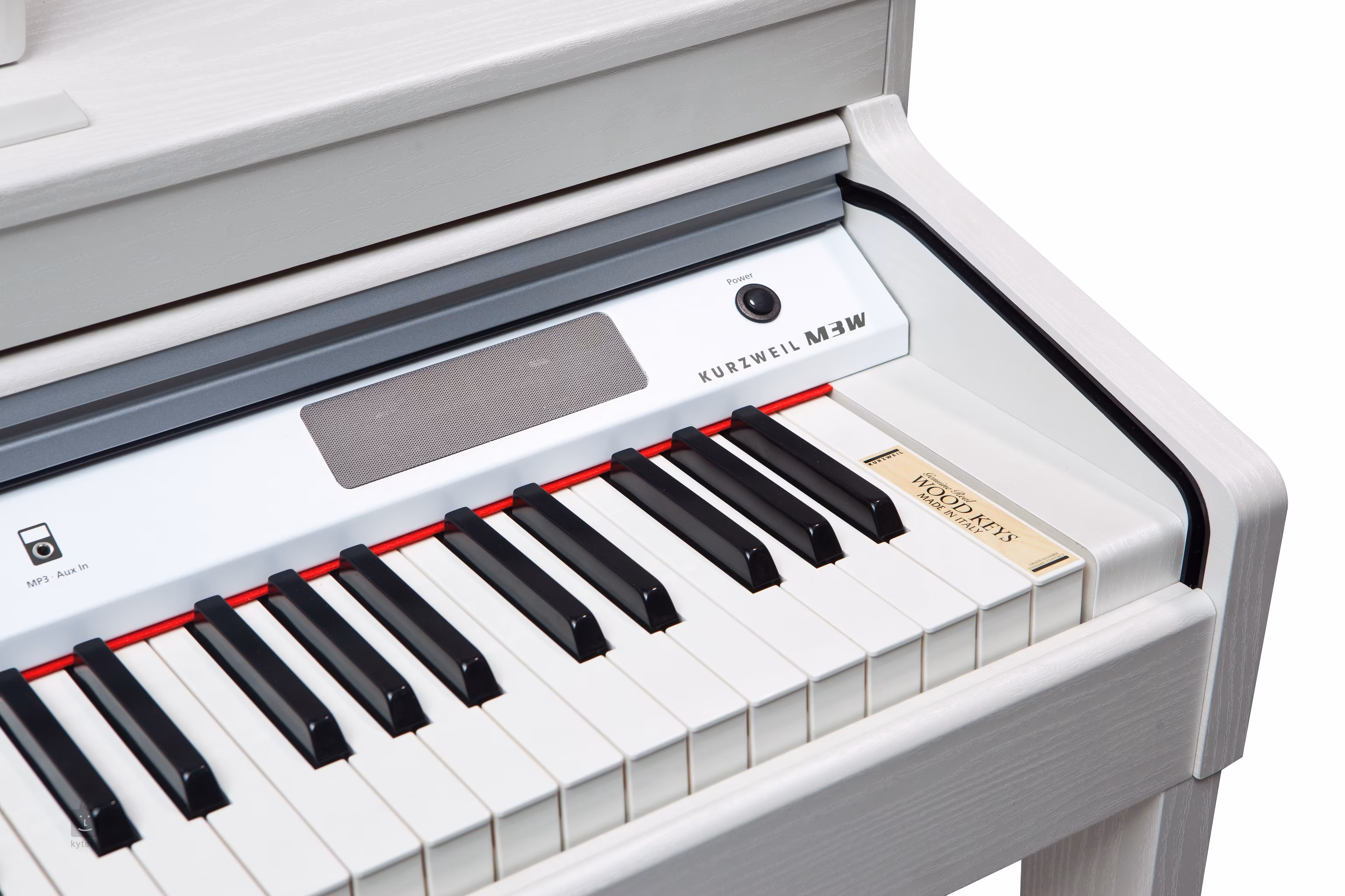 Nová řada digitálních pian Kurzweil M3W v sobě kloubí tradici s moderním designem, vyrábí se v klasickém odstínu palisandru a elegantní bílé barvě. Mezi hlavní devizi této modelové řady patří dřevěná klaviatura a důmyslný ozvučovací systém setávající se ze 4 dvoupásmových reproduktorů, které jsou doplněny dvojicí basových wooferů a dvojicí tweeterů umístěných přímo nad klaviaturou. To vše spolu se zesilovačem o výkonu 50W vytváří jedinečný široký stereo zvuk, který je optimalizován jak pro hráče tak i pro posluchače v okolí. Díky AUX IN vstupu umístěnému přímo na ovládacím panelu můžete snadno spouštět skladby z vašeho chytrého telefonu nebo mp3 přehrávače a doprovázet své oblíbené skladby naživo.