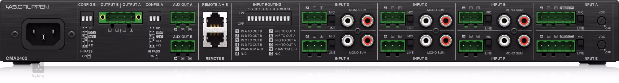 Lab Gruppen CMA2402 je dvouzónový koncový zesilovač s 8 vstupními kanály, který představuje dokonalé řešení pro komerční a průmyslové aplikace, jež vyžadují skvělý zvuk ve spojení s energeticky úspornými provozními náklady.