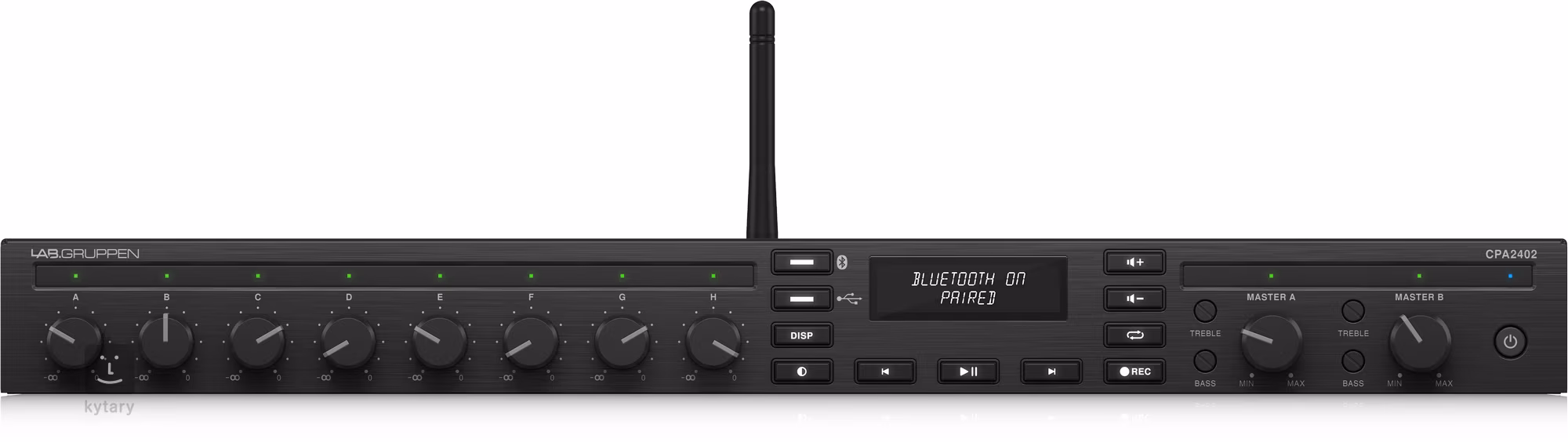 CPA2402 disponuje výkonem 2x 240 W a poskytne skvělý zvuk pro reproduktory ve velké restauraci, nákupním centru, hotelu či pro firemní a veřejné prostory, kde je potřeba provozovat hudbu na pozadí nebo informační hlášení. Zvuk až z 8 různých zdrojových kanálů (stereo/linkové či mikrofonní), včetně streamování z Bluetooth zařízení (mobily, tablety) či prostřednictvím USB přehrávání s dedikovanými transportními funkcemi a displejem lze díky nastavitelným DIP přepínačům distribuovat do dvou nezávislých zón. Jednokanálová výstupní konfigurace každé ze zón zároveň umožňuje interní mono summing příchozích audio signálů prostřednictvím dvou RCA konektorů (platí pro vstupní sekce B, C, D, F, G, H).