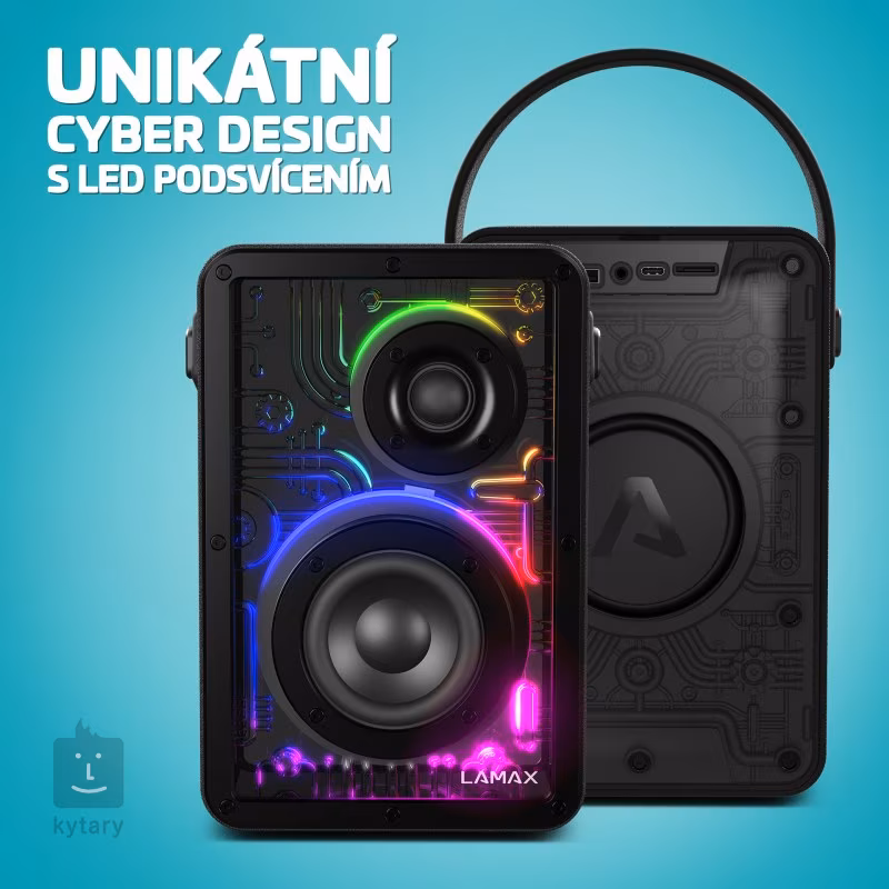 Lamax CyberWave1 je ideální společník na každou venkovní akci i pořádnou párty. Nejen, že skvěle vypadá a rozhodně vám neudělá ostudu před přáteli, ale pokud jej nebudete šetřit a jeho 50 W zesilovač vybudíte naplno, můžete rovnou počítat s tím, že akci rozhodně neutajíte před sousedy. P