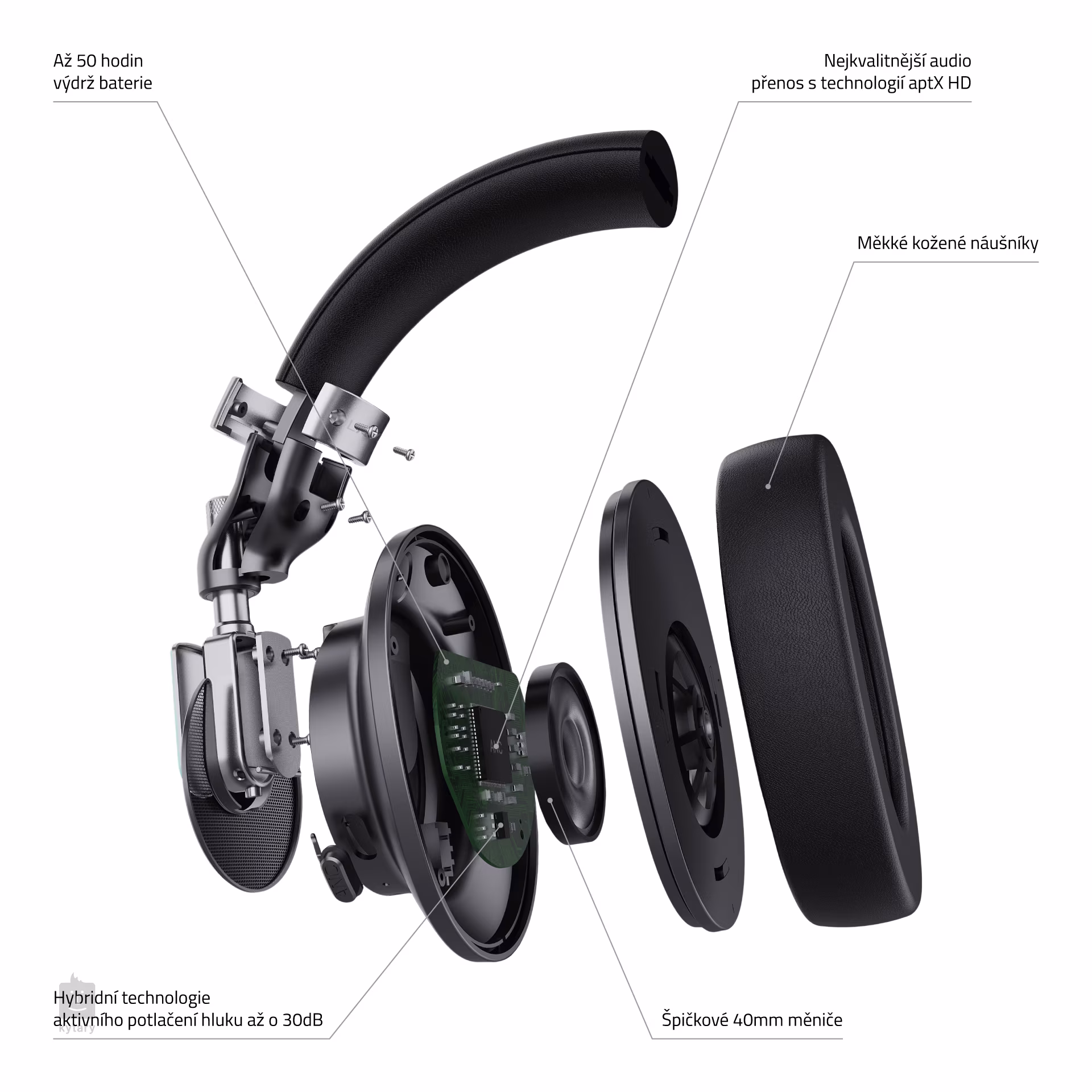 Prémiovka už od pohledu Na první pohled tě zaujmou jedinečným titanovým designem, na první dotek se ti zalíbí luxusním zpracováním a na první poslech tě přesvědčí, že sis vybral správně. Sluchátka vydrží na jedno nabití až 50 hodin (25 hodin se zapnutým ANC), takže jsou ready na týden v officu i let kolem zeměkoule. Pokud potřebuješ volný ruce, při hovorech ti pomůže zabudovaný mikrofon. A kdyby ses chtěl vrátit ke starý dobrý klasice, klidně do nich můžeš i zapojit 3,5 mm jacka.